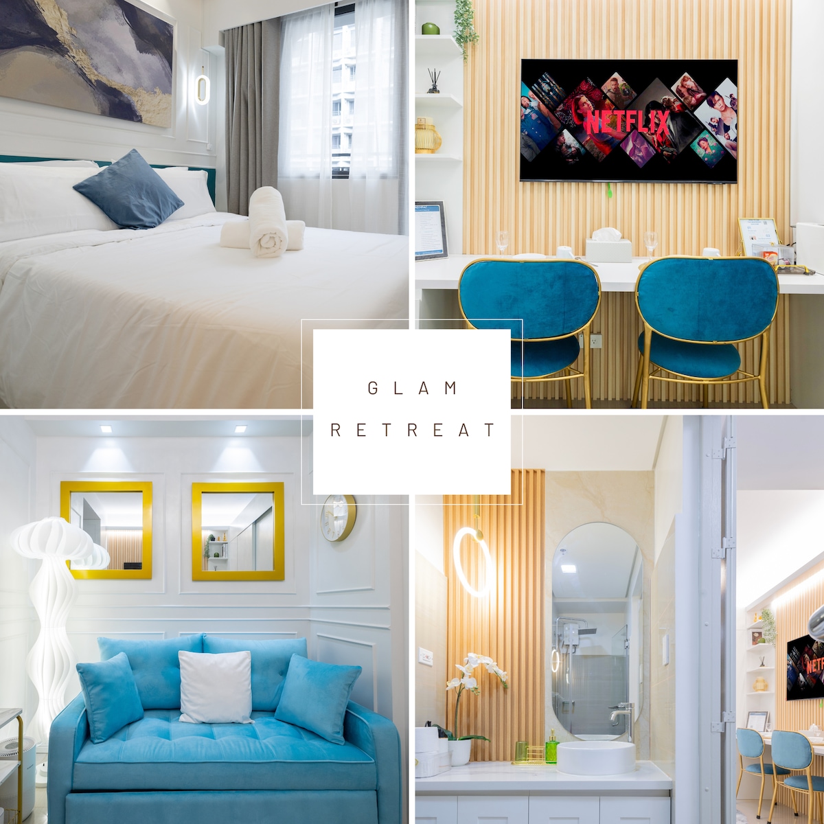 Welcome to Glam Retreat An elegant 1-bedroom condo near the vibrant Mall of Asia, IKEA, SM Arena & SMX! This sophisticated haven, with its stylish allure and inviting ambiance, offers the perfect refuge amidst the city's dynamic energy. - 1 BR high floor unit - Sofa Bed - Nespresso Coffee - 100mbps Wifi - 45-inch Smart TV - Netflix Premium - Dining Nook - Cookware set - Self check-in GMap: Glam Retreat in Pasay **Please see FAQs below for more info.**