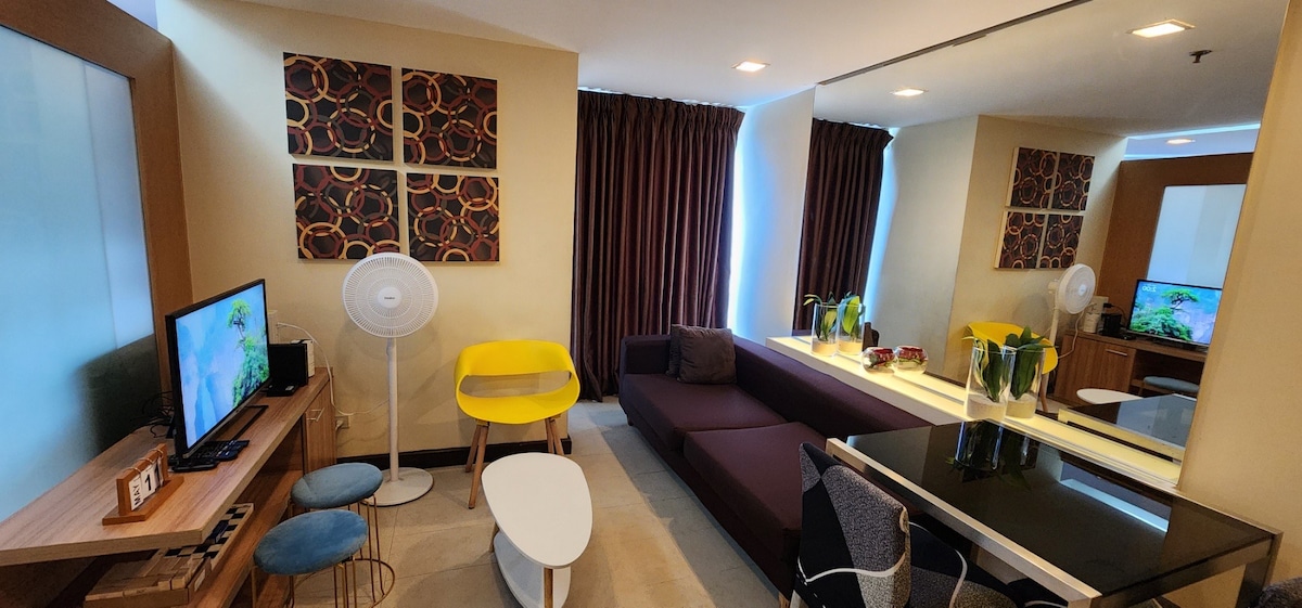 ✨ Modern 1BR Executive Suite in Ortigas Center ✨ Experience city living at its finest in our stylish and chic modern 40sqm one-bedroom suite. Perfect for couples or solo travelers, this stylish space offers two Smart TVs with Netflix and fast Wi-Fi. Located steps from SM Megamall, The Podium, and St. Francis Square, everything you need is right outside your door 🌃