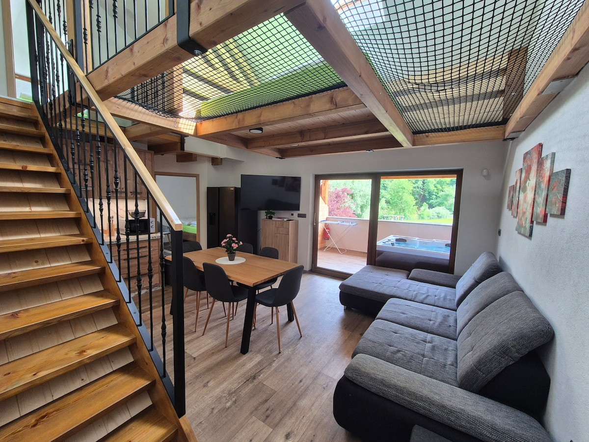 Welcome to Apartment Dalgora Delux in Podčetrtek. This stylish two-bedroom gem on the 4th floor, accessible by elevator, offers a modern living space with a joint living room, dining area, and kitchen. Enjoy breathtaking views from the balcony and terrace. Relax in the private bathroom, stay cool with air conditioning, and connected with free WiFi. On-site parking is provided. Just 1 km from Thermal Riviera Olimia, it's a perfect retreat for relaxation and adventure. Reserve your stay today!