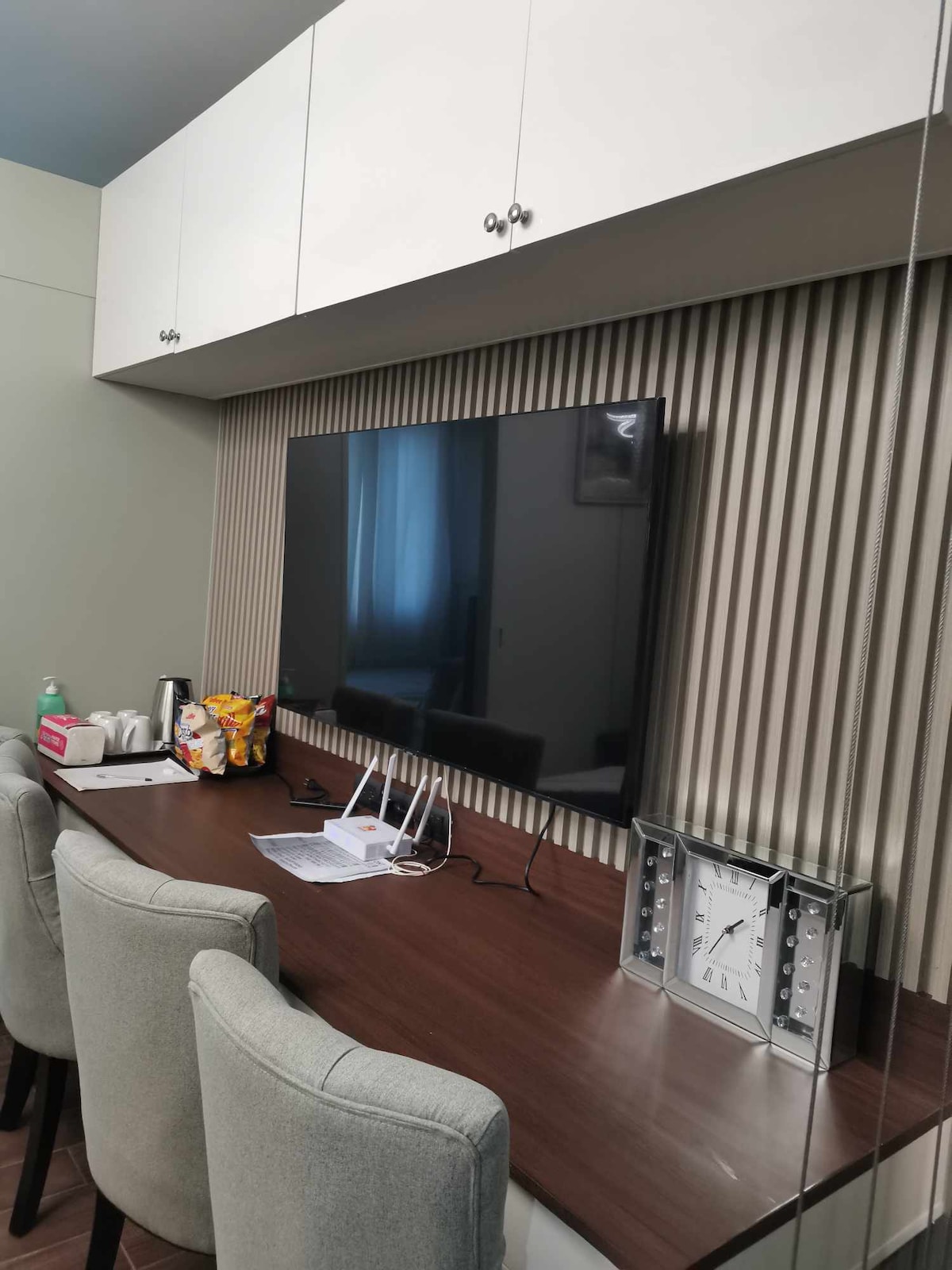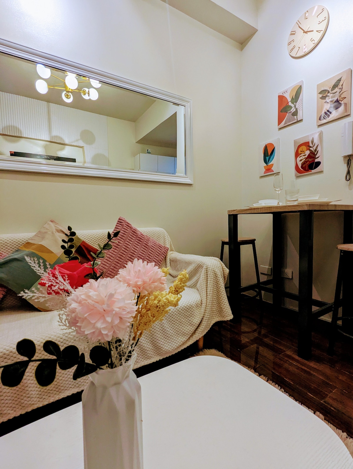Welcome to Alta Elegancia—your premium hotel-style retreat in the heart of Makati, offering stylish comfort and unmatched convenience. By its name, “Alta” highlights the suite’s high-rise views, while “Elegancia” exudes understated sophistication. Rooted in Filipino heritage with a luxurious touch, the space feels stylish, familiar, and inviting. Perfect for tourists seeking a serene urban escape, foreigners with embassy appointments, business travelers, or couples on a romantic getaway.