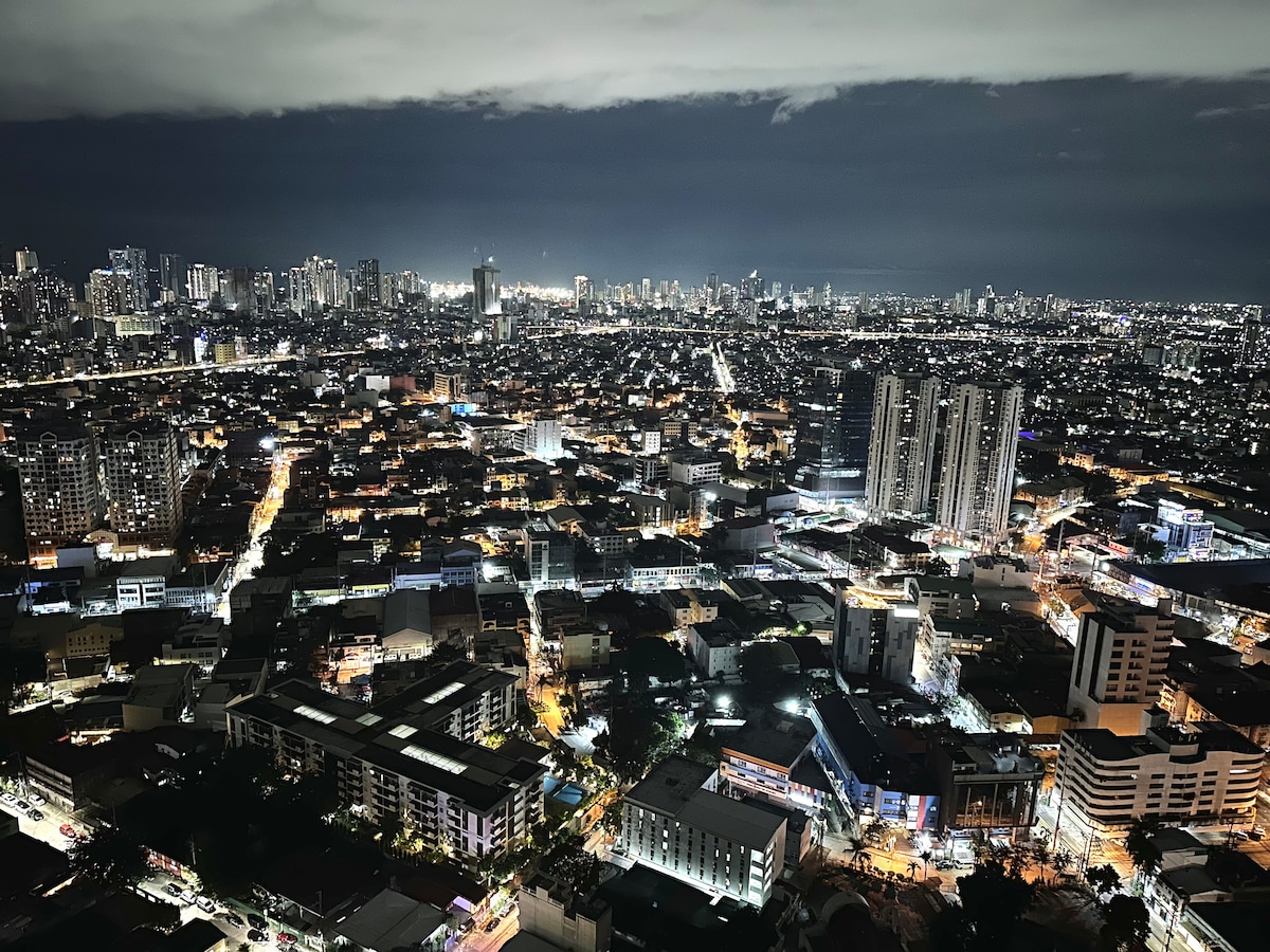马卡蒂1卧室带阳台-城市和海湾景观/Netflix/无线网络