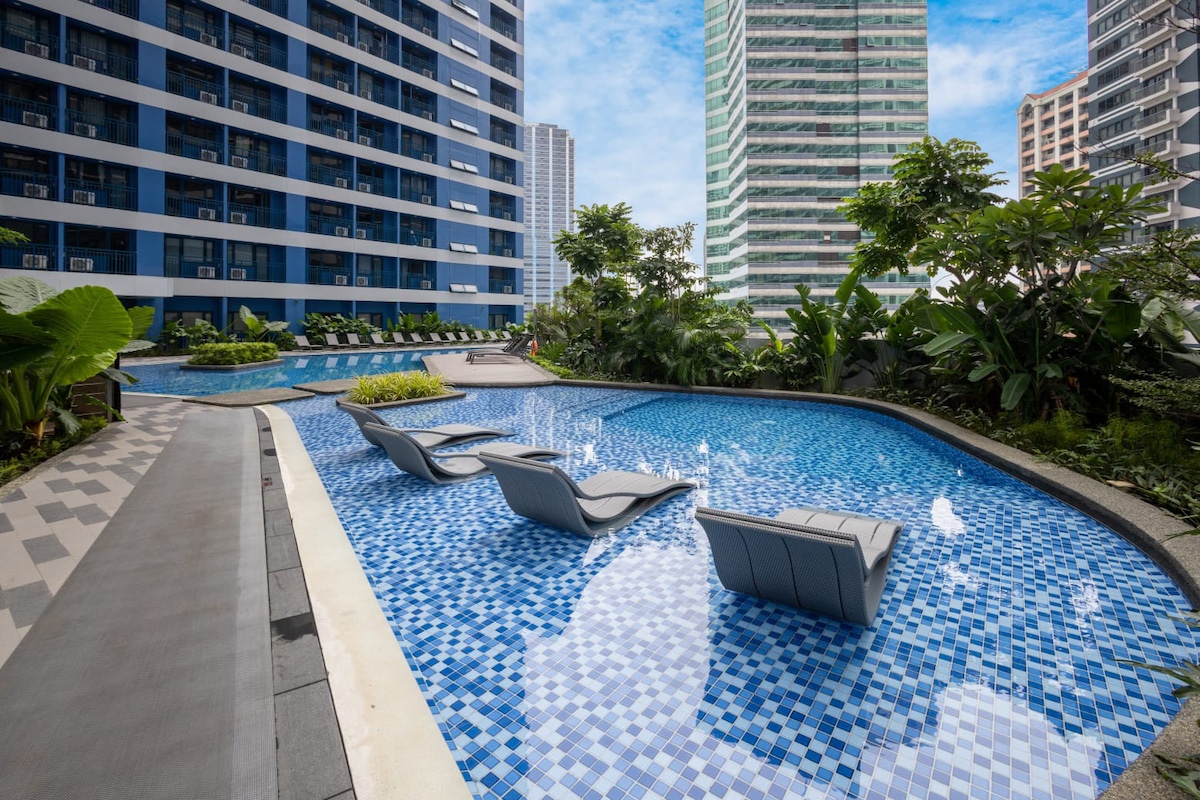 This special place is close to everything, making it easy to plan your visit. Your room is equipped with a speedy internet connection and a Netflix-ready Samsung 65-inch Crystal UHD 4K Smart TV perfect for movie marathons. Work- lounges are available for free on the 8th floor. Kids playground, and quiet lounge area can be used free of charge on the 7th Floor. Swimming pools are open daily from 6AM til 10PM except Mondays (P150 on regular days, including weekends; P300 during holidays)
