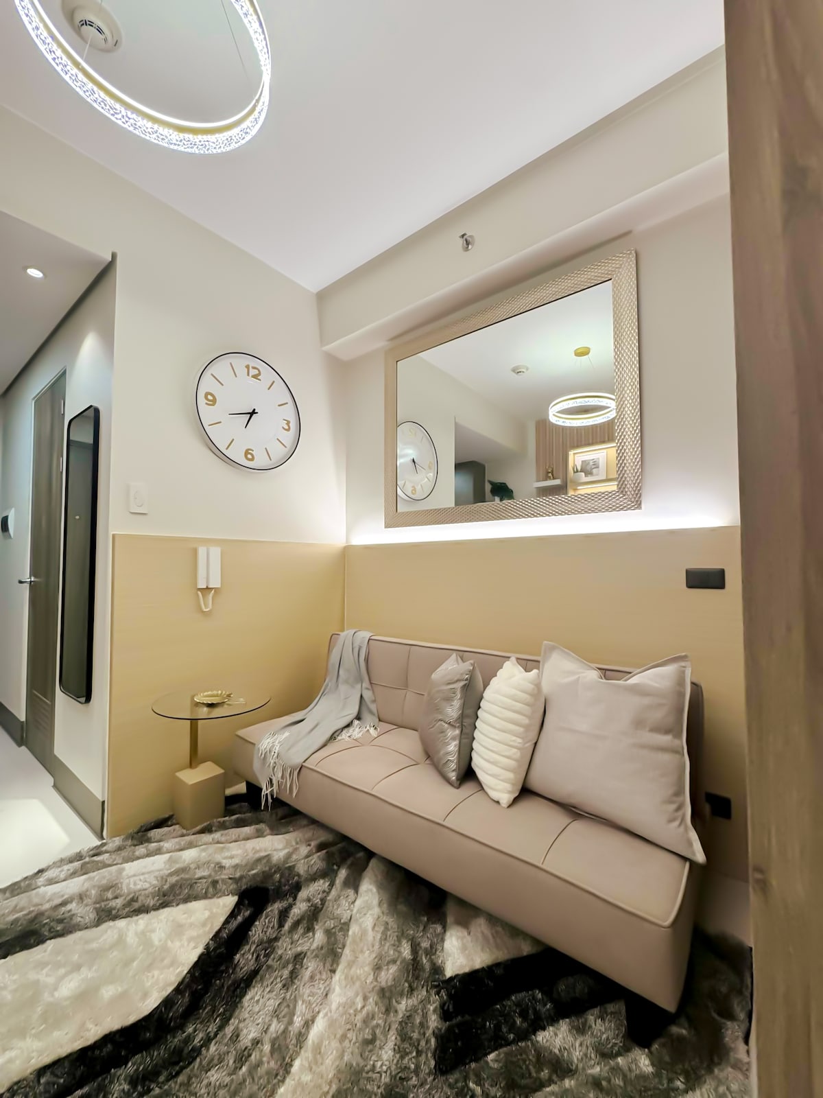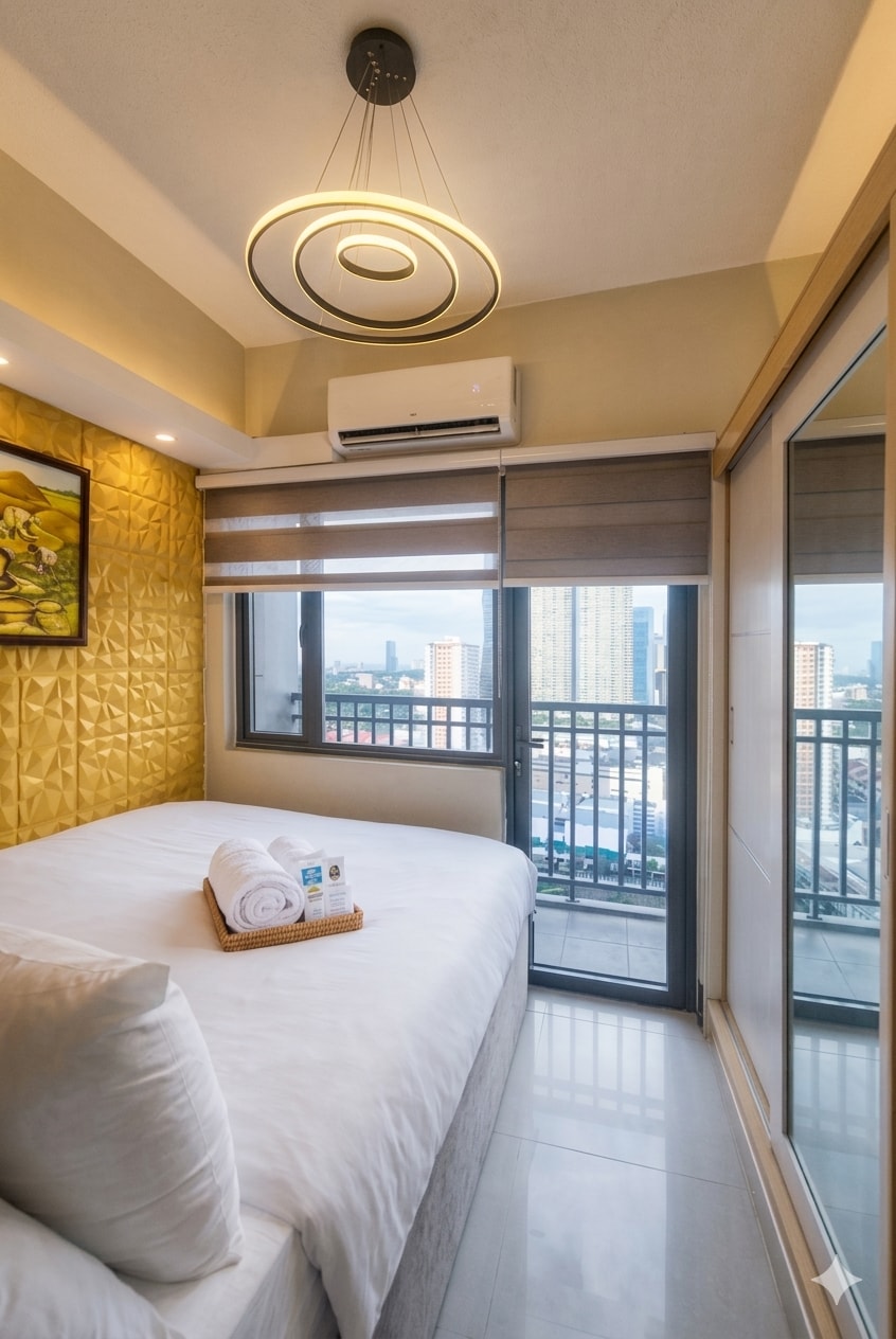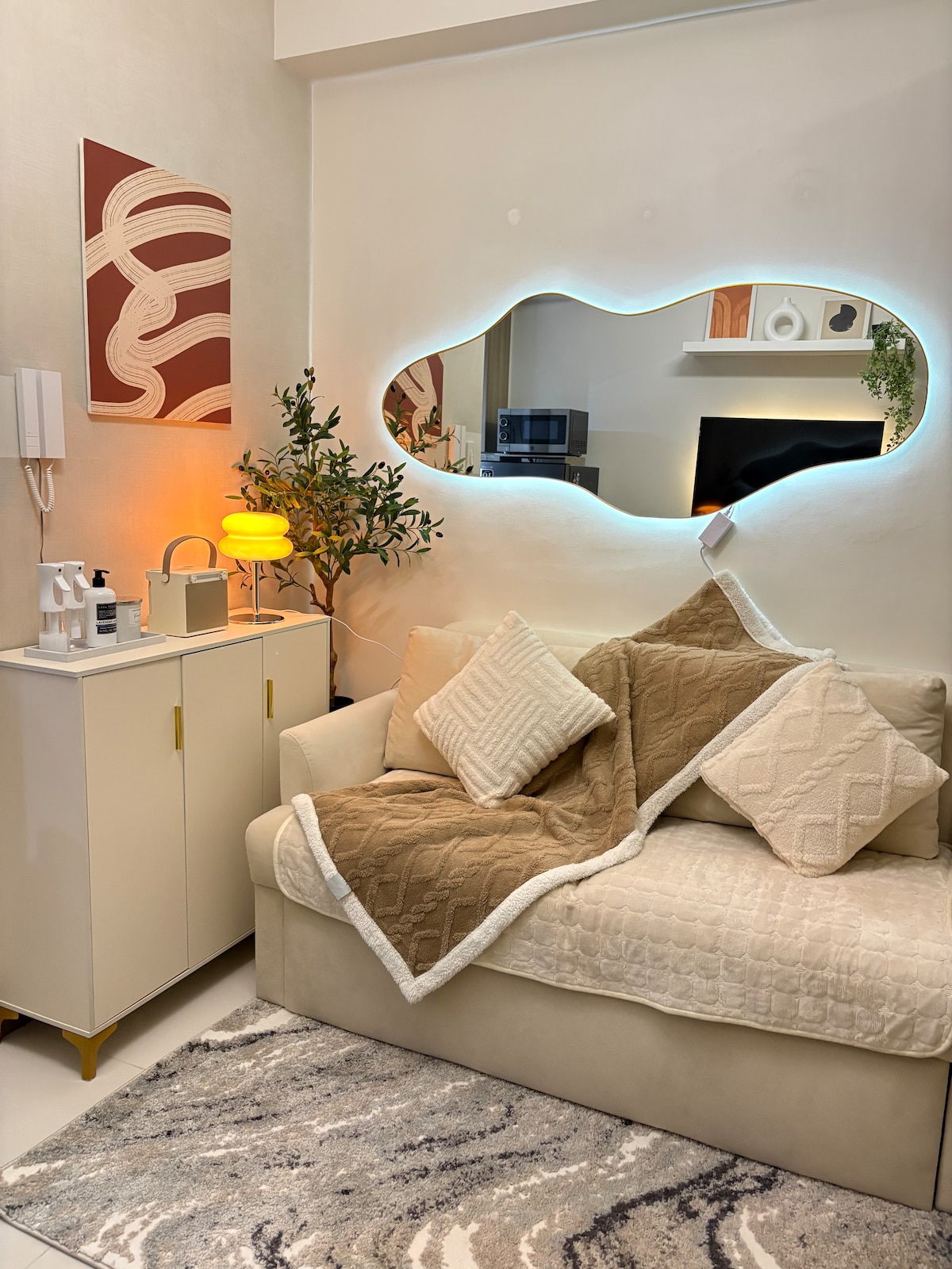 Looking for a fun, cozy, and techy escape? This 24sqm condo in EDSA Mandaluyong is your perfect staycation spot! Enjoy voice-activated smart living, 75” Premium QD Mini LED TV, delivering advanced HDR brightness and stunning picture performance and hotel-like comfort. Sip coffee on the balcony while catching a gorgeous sunset. Stay connected with 100mbps internet—perfect for couples, WFH days, or quick getaways. Stylish, comfy, and packed with cool features—your relaxing city escape starts here!