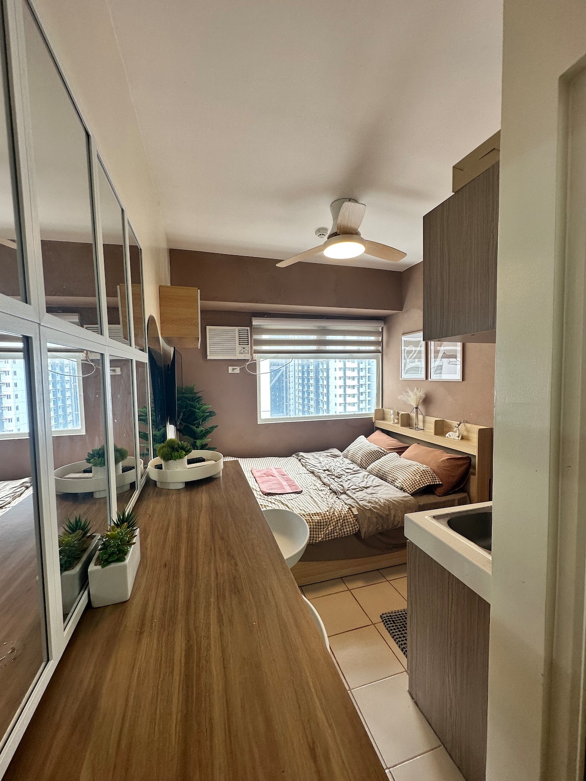 Cozy Crib @ Fame 🏡 A warm and cozy place to stay that feels like home 🏠🌤️ Approximately 25 sqm 🚪 1 bedroom 🛌 with own 1 toilet and bath 🚿🚽 Located at FAME Tower 1 🏢 Facing amenities 🏊♀️ 📎 One double bed with pullout single bed 📎 Good for 3-4 pax 📎 Pool fee is separate 📎 Toiletries included 10-15 mins walk to SM Megamall 5-8 mins walk to Shangri-La Plaza 5-7 mins walk to MRT - Shaw station Near Greenfiled District (Park and other commercial areas), POEA, Robinsons Galleria