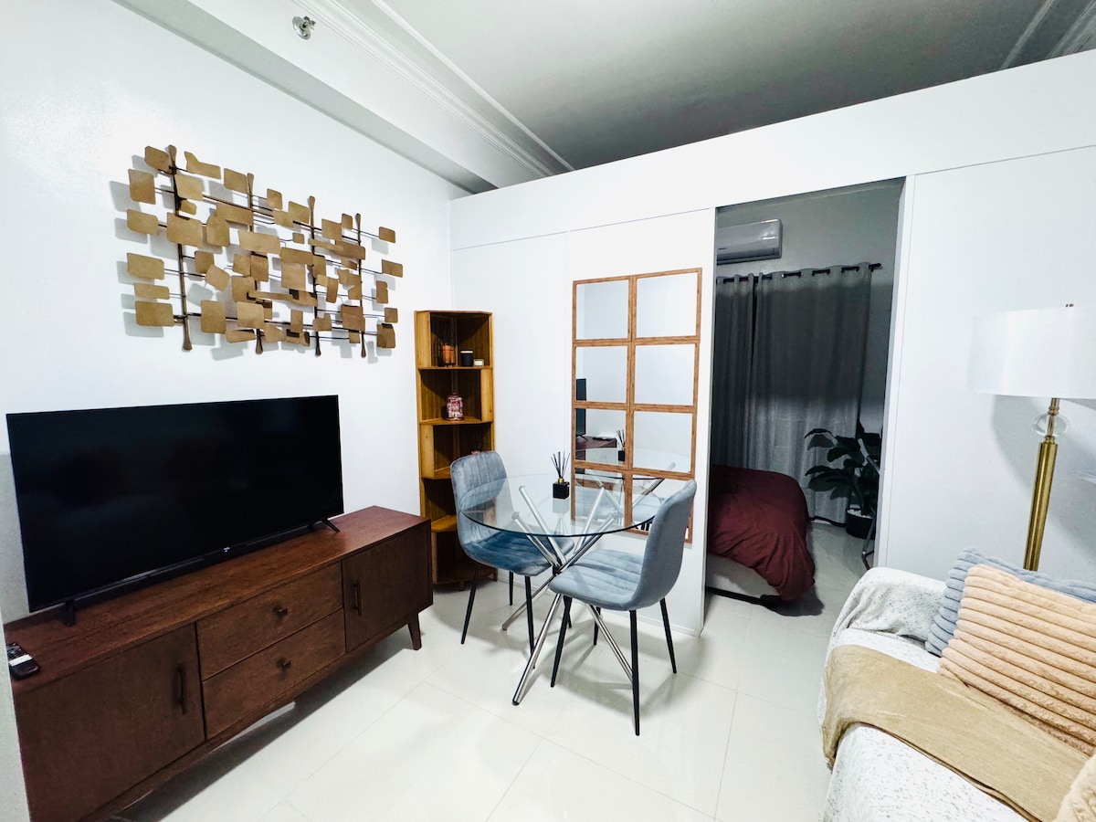 Feel stylish and experience the BGC vibe at this centrally-located place. Get direct access to Uptown Mall. This place is also just across the newly opened Mitsukoshi Mall. Our newly renovated place is bright and airy with a fantastic view of the Uptown Mall fountain show. Take an easy stroll as all major points of interests are just a few mins walk. Feel the energy of Uptown BGC. Shop, dine, or just have a relaxing break at the corner cafe. Come feel the energy of this vibrant community!