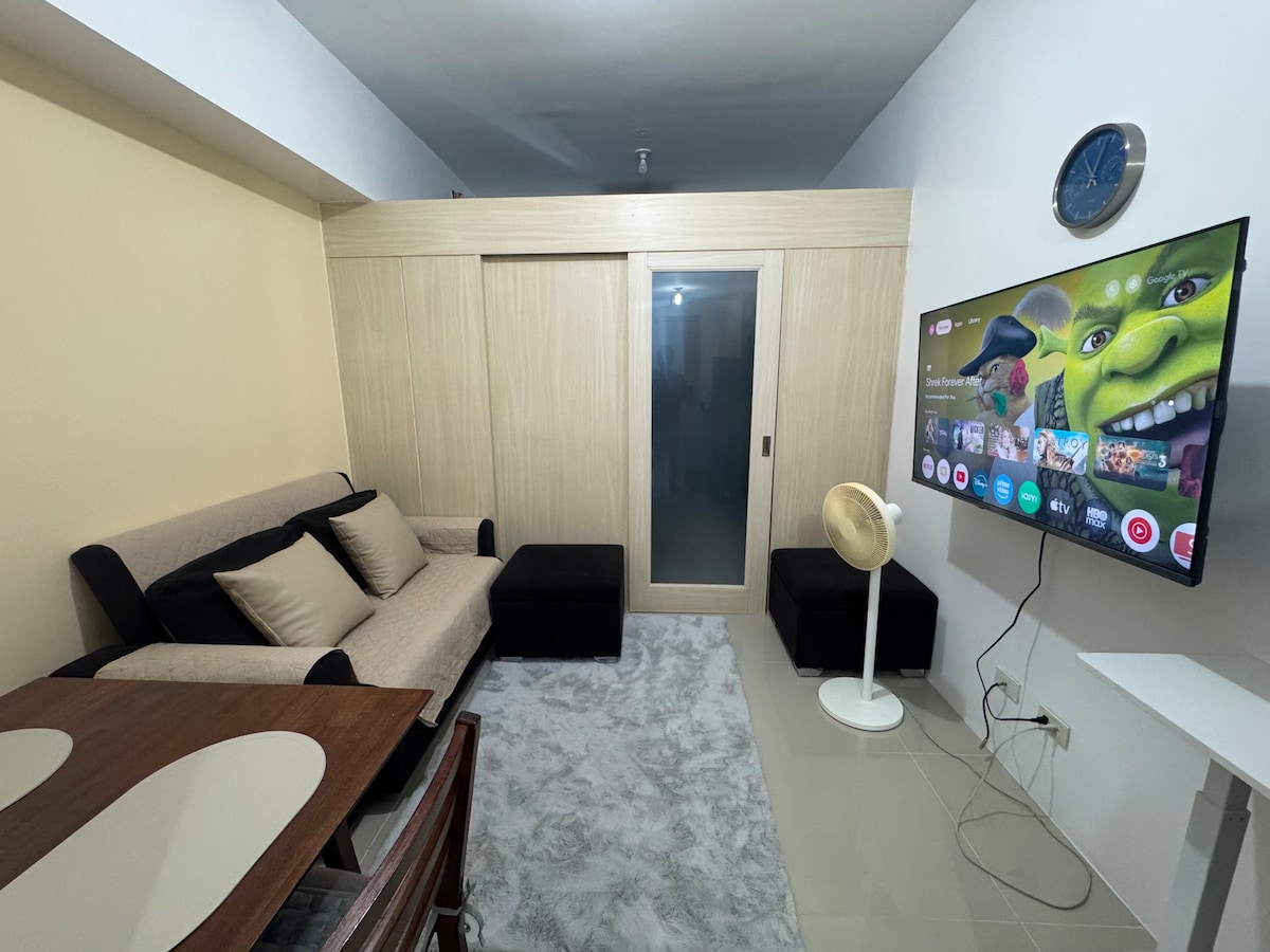 This special place is close to everything, making it easy to plan your visits. Activities 🏝️ Pool Access (PHP 150/head on Regular days and PHP 300 for Holidays) 🎲 Board and card games 🎬 Netflix 📺 Youtube 🎤 Bluetooth Mic for karaoke Cozy and relaxing! Refresh your mind, Unwind! ❤️ Restaurants, supermarkets, salon are just located in the ground floor. Note: For registration purposes, a copy of IDs and Vaccination Card is required. Thank you.