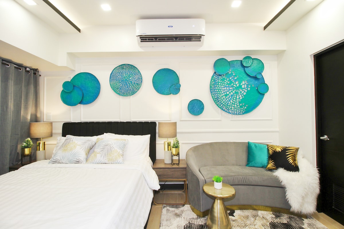 Welcome to our Chic and Eclectic Luxe at Salcedo Skysuites Makati. A designer 36 sqm bedroom unit with Modern Luxe at the center of Makati Business District. Close to Ayala and Buendia, and 5mins walk away from Salcedo Saturday Market.