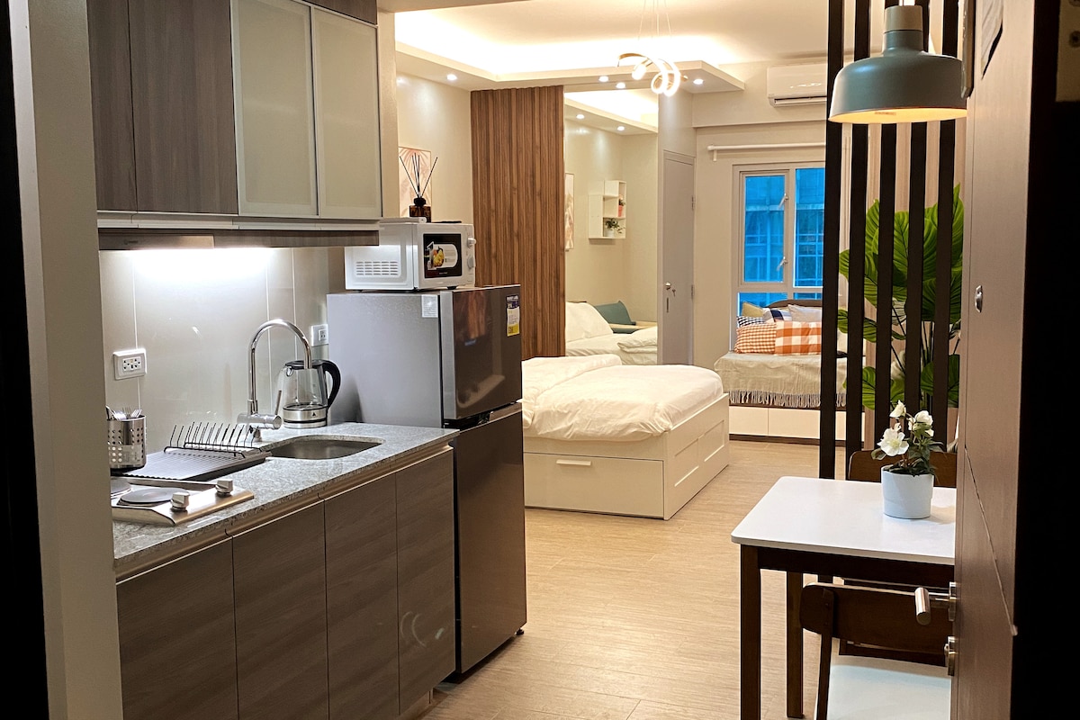Spacious, private owned in the heart of Poblacion, Makati : Honestly high-quality arranged for your homely stay. 32+ sqm studio, disinfected, vacuum+mop cleaned, quite, inverter aircon, bathtub, well prepared bedding+towels, drinking water, almost like in home. Walking in minutes: Makati CBD, Rockwell/Century malls, nice restaurants and adjoined diverse nightlife in famous Poblacion! [Pls "Inquiry" with us first, or, book with providing all guests' Gov IDs & Vax Cards pics for lobby entrance.]