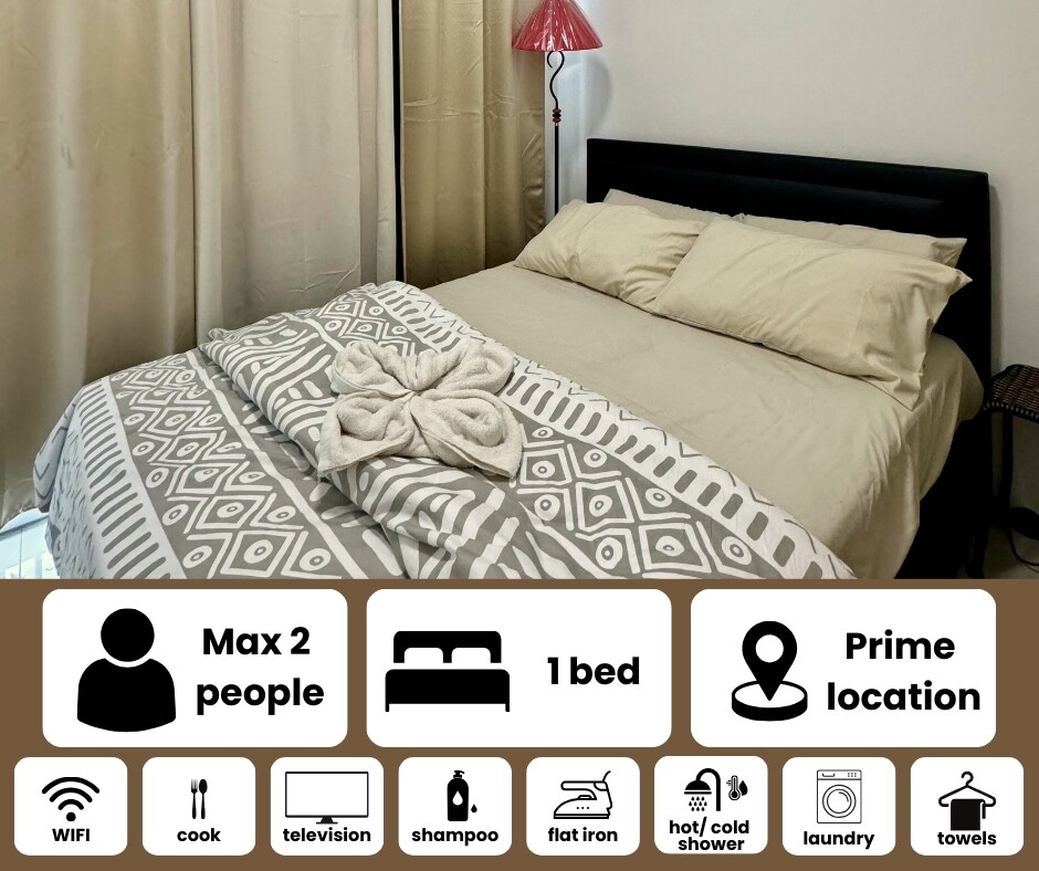 This special place is close to everything, making it easy to plan your visits. Activities 🏝️ Pool Access (PHP 150/head on Regular days and PHP 300 for Holidays) 🎲 Board and card games 🎬 Netflix 📺 Youtube 🎤 Bluetooth Mic for karaoke Cozy and relaxing! Refresh your mind, Unwind! ❤️ Restaurants, supermarkets, salon are just located in the ground floor. Note: For registration purposes, a copy of IDs and Vaccination Card is required. Thank you.