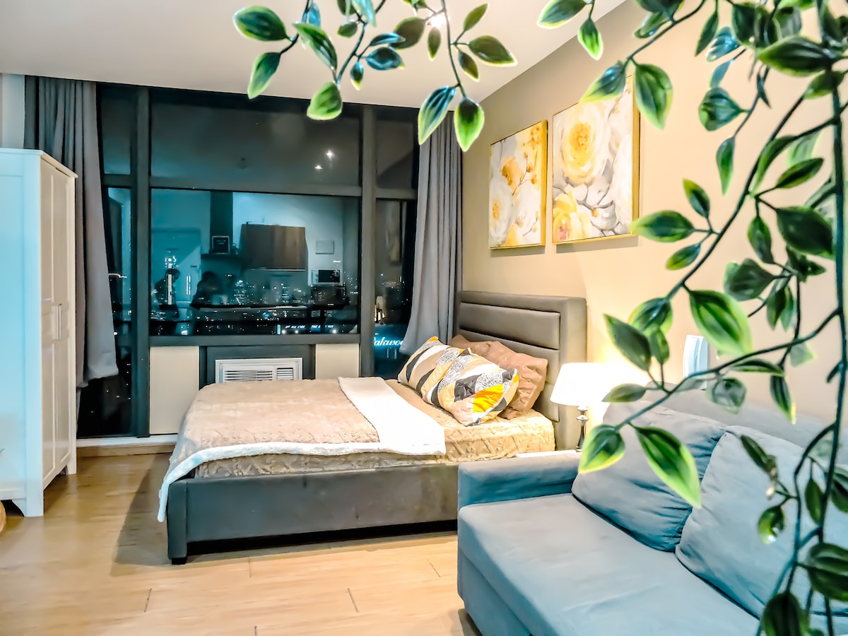 Stay in a stylish, interior-designed tropical suite with AMAZING & UNOBSTRUCTED CITY VIEWS in Knightsbridge Residences, a 5-star condo centrally located in Poblacion. Enjoy this luxurious 40 square meters suite that is MORE SPACIOUS than most tiny 20 sqm Airbnbs in the area. Located at the 37th floor w/ 5-star amenities, fully-fitted kitchen, balcony and everything you need for a perfect stay: 200Mbps Fiber WiFi, Netflix, 43-inch TV, Olympic-size swimming pool, modern gym, sauna & 24/7 concierge