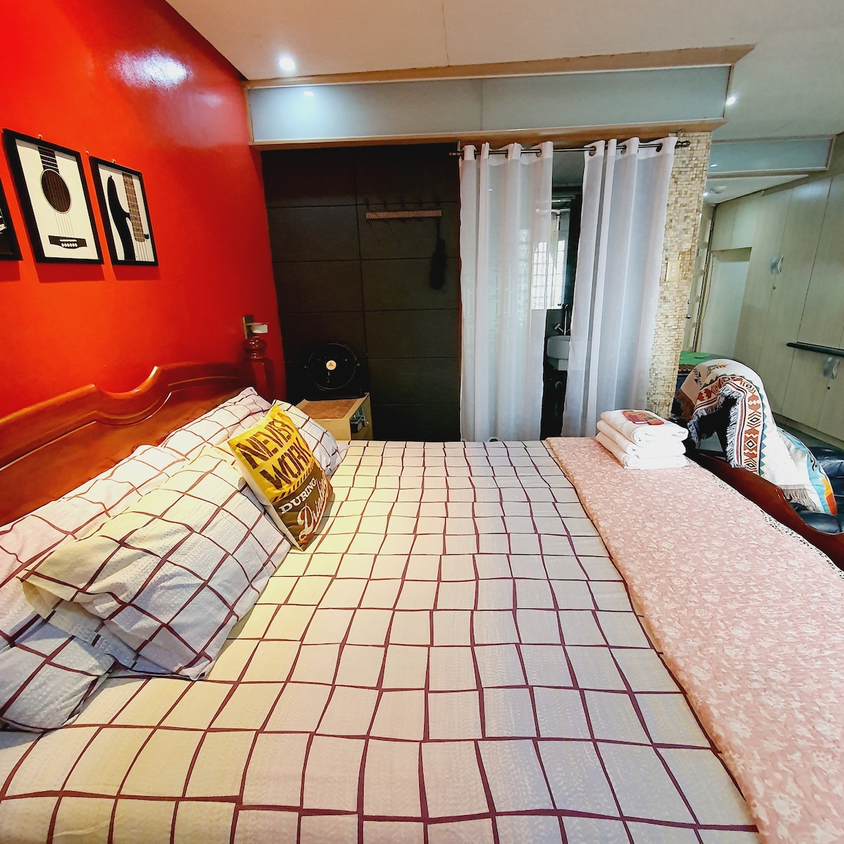 Located in the center of Makati red-light district, this one bedroom apartment is renovated & fitted out to suit an endless summer vacation vibe With Netflix on smart TV, split type AC in the bedroom, comfy queen bed, love seat, full kitchen plus a spacious balcony with the best view of P.Burgos Street below 🚬 Registered guests are allowed to have visitors but room provisions can only accommodate 2 to 5 pax staying overnight. If you prefer utter silence, this might NOT be the place for you‼️
