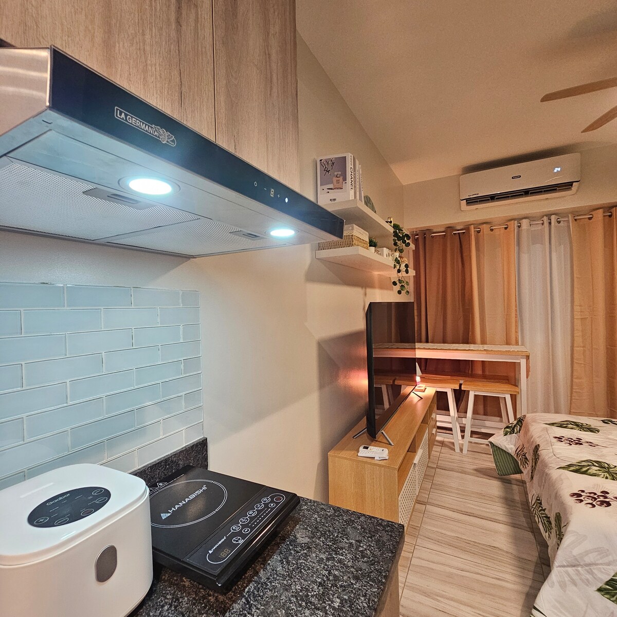Escape to a high-floor suite with breathtaking BGC skyline views, cinematic JBL surround sound, and a 55-inch Full 4K Smart TV with LED mood lighting—your ultimate movie night haven. Take in the scenery with high-grade binoculars, then sink into the ultra-comfy Emma® Cloud-Bed for a perfect night’s sleep. Far from city noise yet close to everything, enjoy fast WiFi, Netflix, Disney+ and more! Truly a fully equipped space for a seamless, unforgettable staycation experience with Cinema 27!