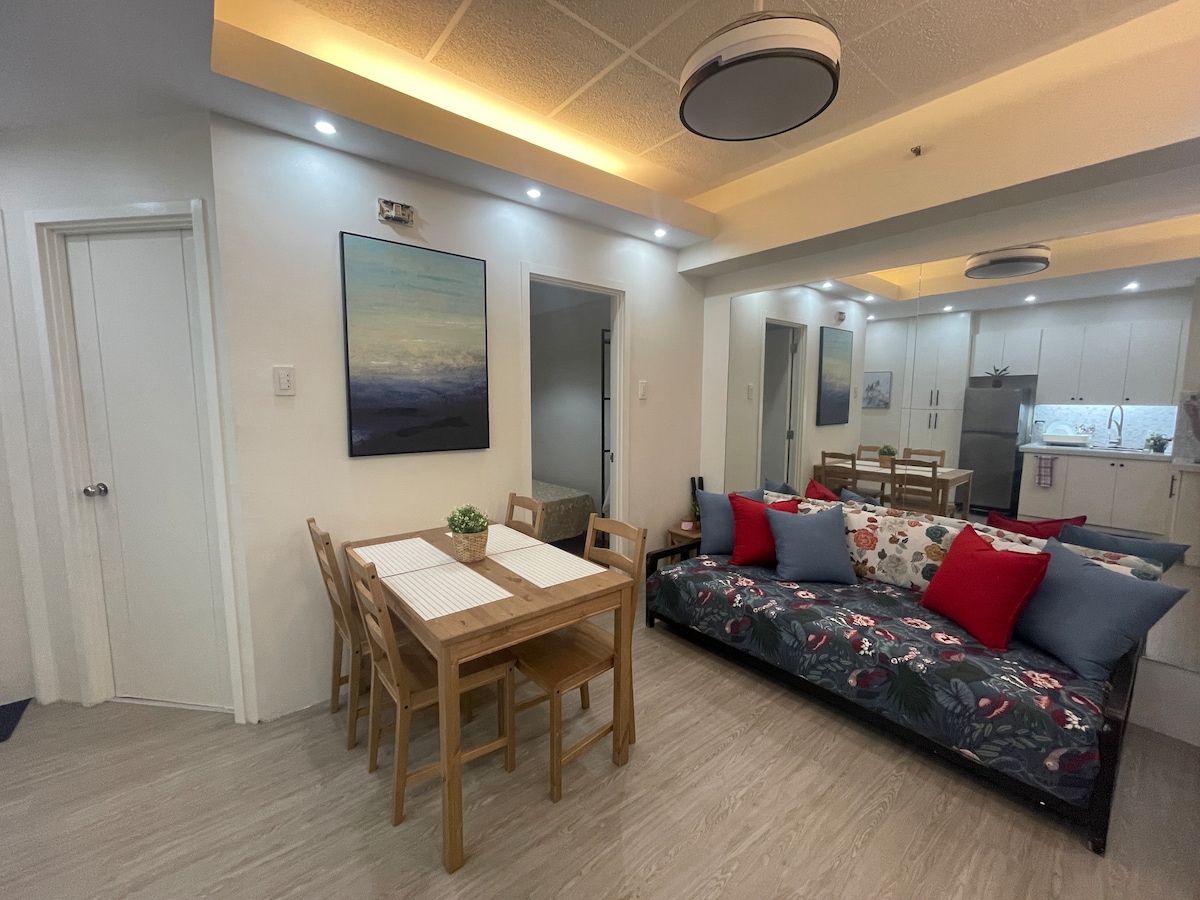 Located in one of the best locations in BGC, the place is a street away from the best BGC spots! The space is interior designed with only the best and most comfortable furniture and equipment. Everything you need to have an enjoyable time is here. The unit feels insanely spacious and fits 4 comfortably. It's a corner unit, so the view is excellent from every room. I'm a neat freak myself, so that you can be sure of the cleanliness of the unit! UHD (58 Inch) TV, HD cable with Fast Internet.