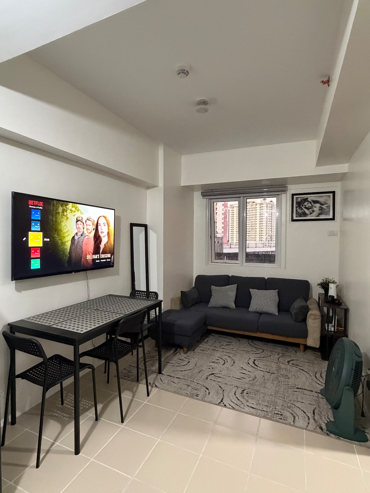 Mezza 2 Residences - 1 Bedroom Condo with swimming pool, fully Upgraded for 2025 in Quezon City, Metro Manila. Free wifi with a 43" SMART TV that includes Netflix. Balcony, air conditioning, refrigerator, hot plate, microwave, sofa bed, and a heated shower. Hotel grade cleaning after every stay. Rooftop pool on 7th floor. Walking distance to SM City shopping, many restaurants, Anytime Fitness, SaveMore Grocery, UERM, and LRT 2 Mapa Transit. Self check in with door code.