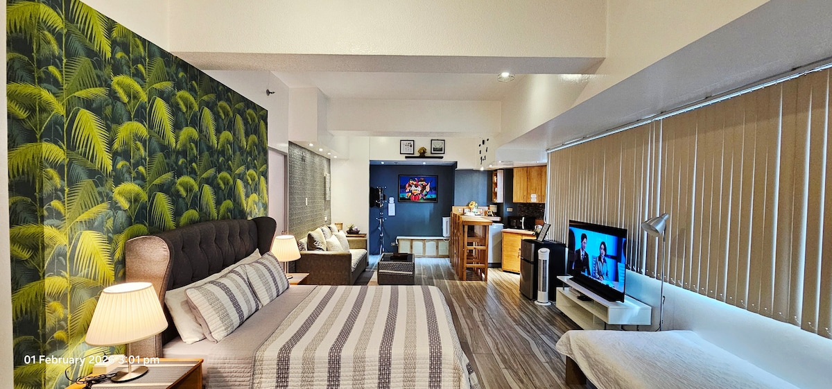 Welcome to our airy contemporary and Mediterranean-inspired Tahanan, a 25 sqm studio unit in Mandaluyong, just a short walk from Rockwell and Powerplant Mall! We’ve designed our space to provide a comfortable stay while capturing stunning sunset views, as well as views of Mandaluyong and Makati from our balcony. Whether you’re visiting for work, leisure, or a mix of both, our well-equipped Airbnb is the perfect base for exploring the vibrant cities of Mandaluyong and Makati.