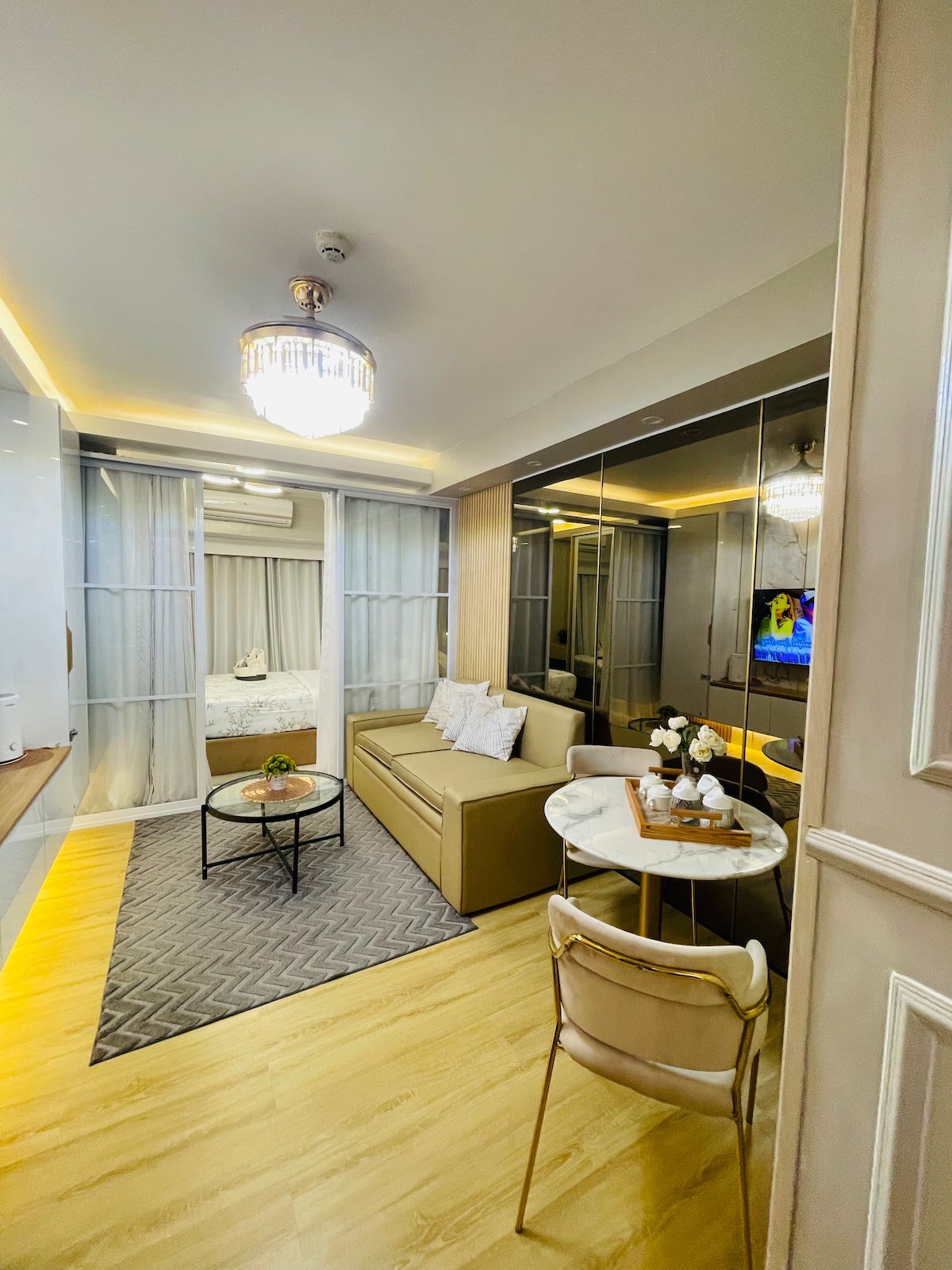 Experience our ultraluxe and cozy, 32sqm 1BR w/ balcony (pool view) in Shore 3 Residences, just in front of MOA and is just 4.5kms away from NAIA! With 1-65” SmartTV (living rm), 1-40"SmartTV (bedroom), 200mbps WIFI, Utube & Netflix, queensize bed, sofabed, ACs in both bedroom and living room areas and a Nespresso machine are just some of the things that we generously equipped this unit all for you to enjoy!