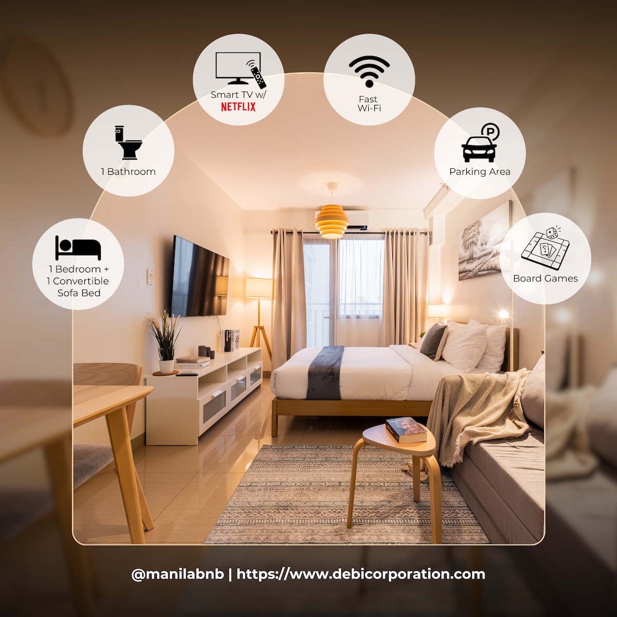 Hi guys!!! Welcome to our cozy one-bedroom family suite centrally located in the heart of Mall of Asia. A fully furnished apartment that offers the ideal blend of comfort and convenience to ensure you of unforgettable experience, making it a perfect choice for a family, couples, solo travelers, or business professionals. Our apartment is located at SMDC Shore 3 Residences, Tower 2, Mall of Asia Complex, Pasay City, Manila. Nearby: *Mall of Asia *Mall Of Asia Arena *IKEA *OKADA *PICC *DFA