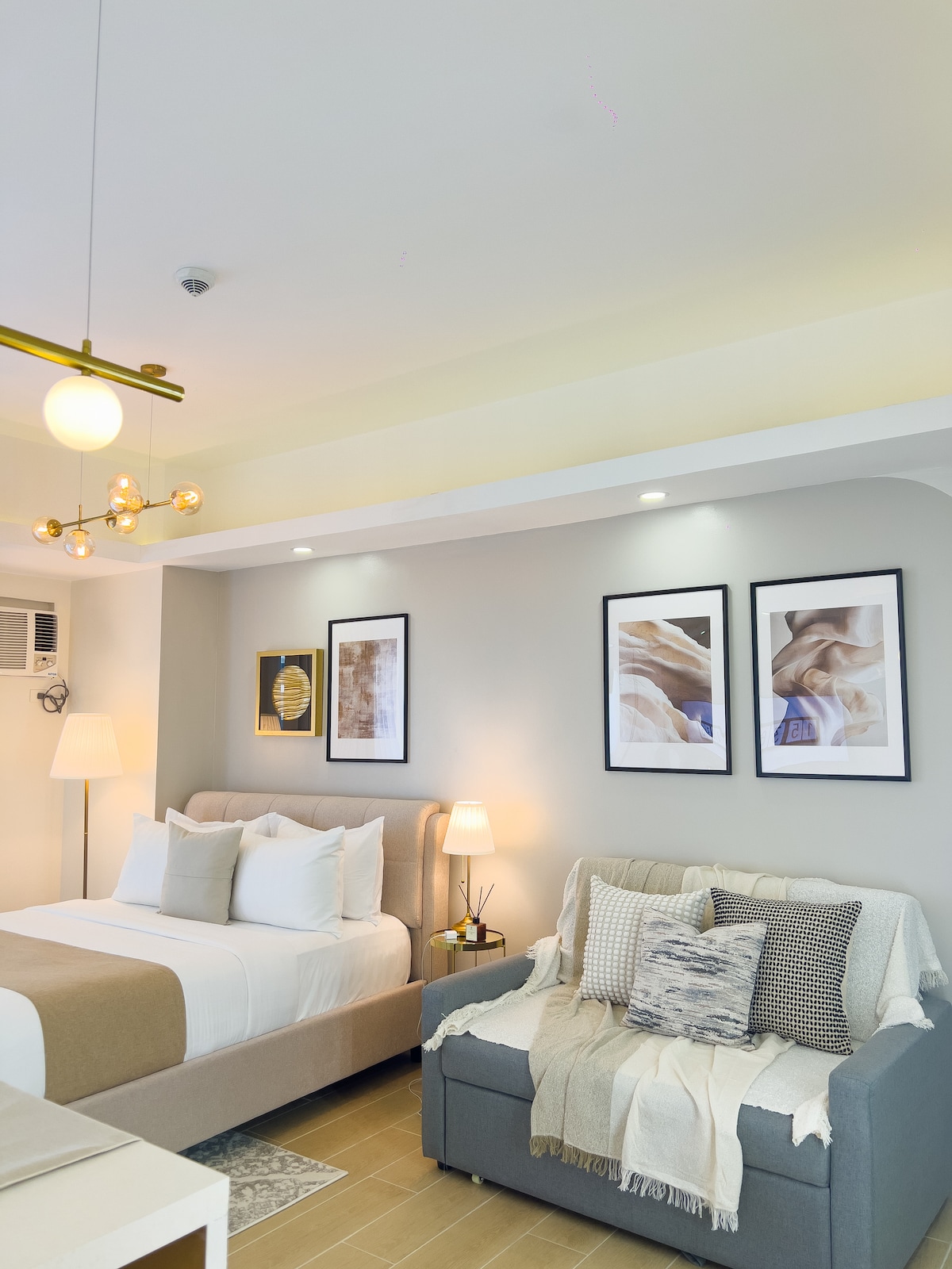 Balay Sa Air – Beyond Ordinary is a compact, cozy, tropical-inspired studio with calming city views, located in a highly accessible area. Thoughtfully designed for comfort and long stays. Enjoy 200Mbps fast WiFi, Disney+, Amazon Prime, a projector, fully equipped kitchen, washer, and hammock. Ideal for couples, solo travelers, digital nomads, and NCLEX takers seeking a quiet, work-friendly space. Whether for work or play, we’re happy to help make your stay special.