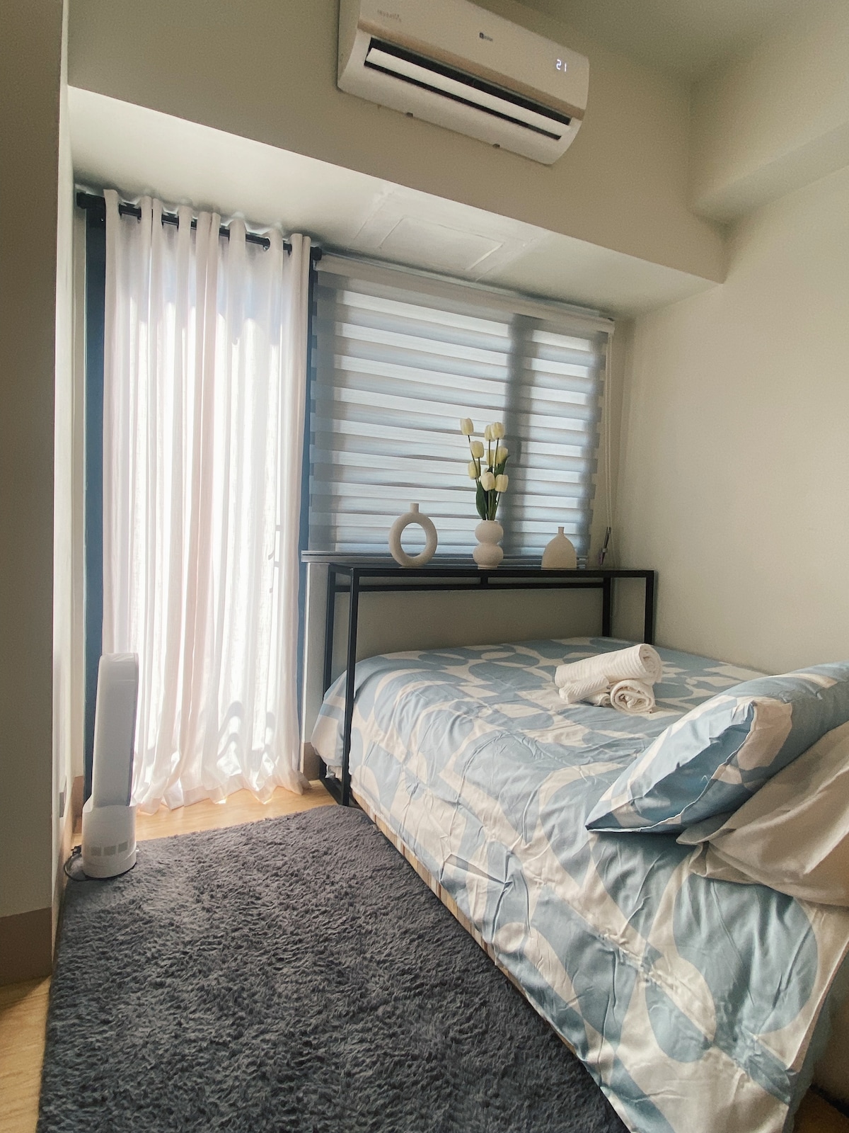 Welcome to SHORE3 Residences by MOA GRAND STAY! It’s a newly Turn-over Unit with a spacious Home vibe. 🏖️ Inclusion🏝️ • Full Size Bed with Pull-out Bed • SOFABED • Steamer • Portable Karaoke • Air conditioned Unit • Smart TV + Netflix • High Speed Internet • Complete Kitchen & Dinning Essential • Refrigerator • Microwave • Electric Kettle • Rice Cooker • Hot & Cold Shower • Bath Towels • Guest Kit (Toothbrush, Toothpaste, Mini Soap) • Balcony • Washing Machine