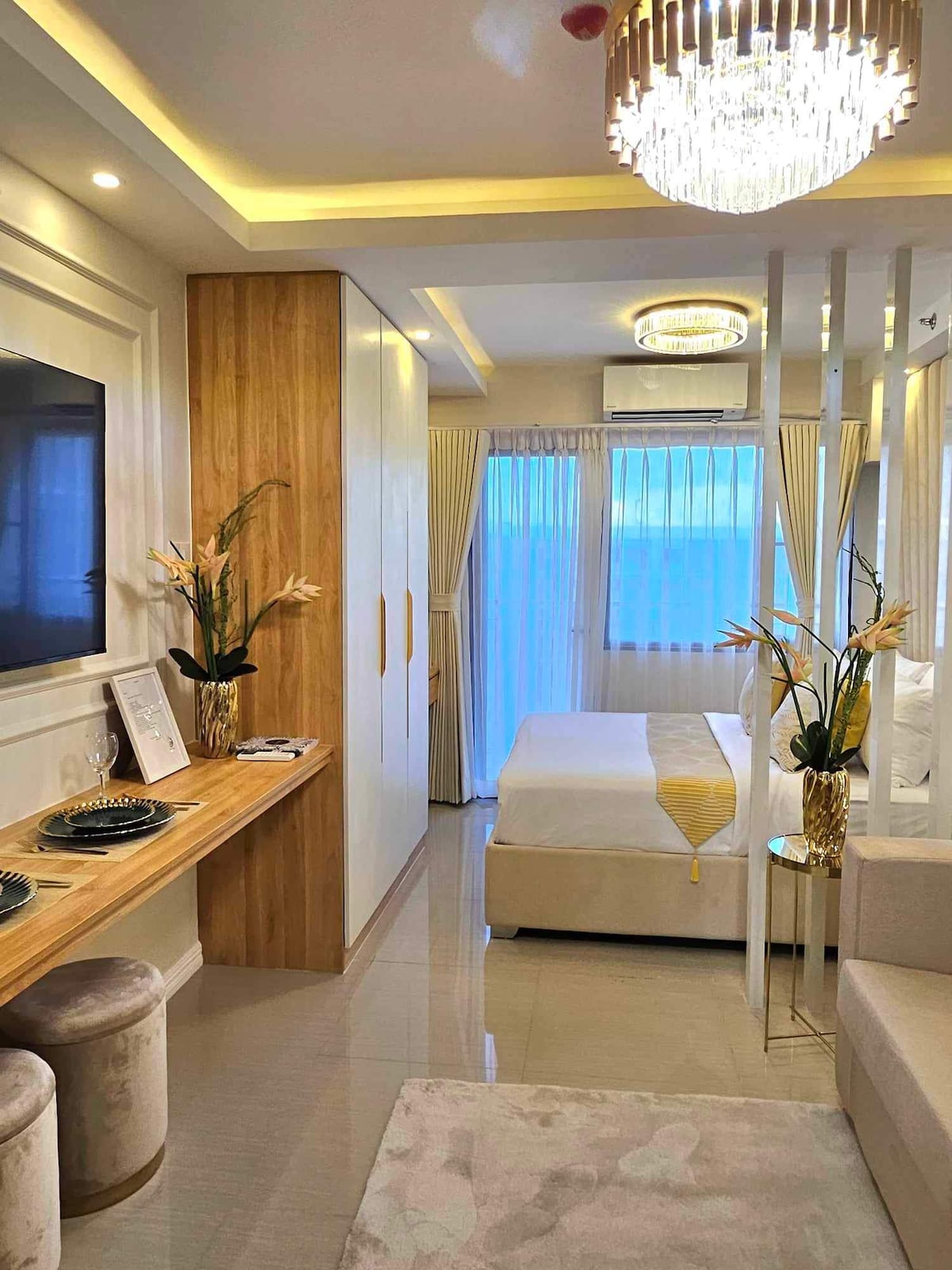 Wake up to unobstructed view of Manila Bay sunset from this luxurious minimalist 1-bedroom lower penthouse located in the heart of MOA - minutes from SM Mall of Asia, MOA Arena, SMX Convention Center, and IKEA. ✨ Features: * Stunning seaside view of Manila Bay * Check-in anytime, keyless entry + smart home automation * Premium parking * 50mbps WiFi * Netflix, AppleTV+ & HBO Max 🎯 Ideal for: * Staycations with a sunset view * Concerts & events at MOA Arena * Conventions at SMX