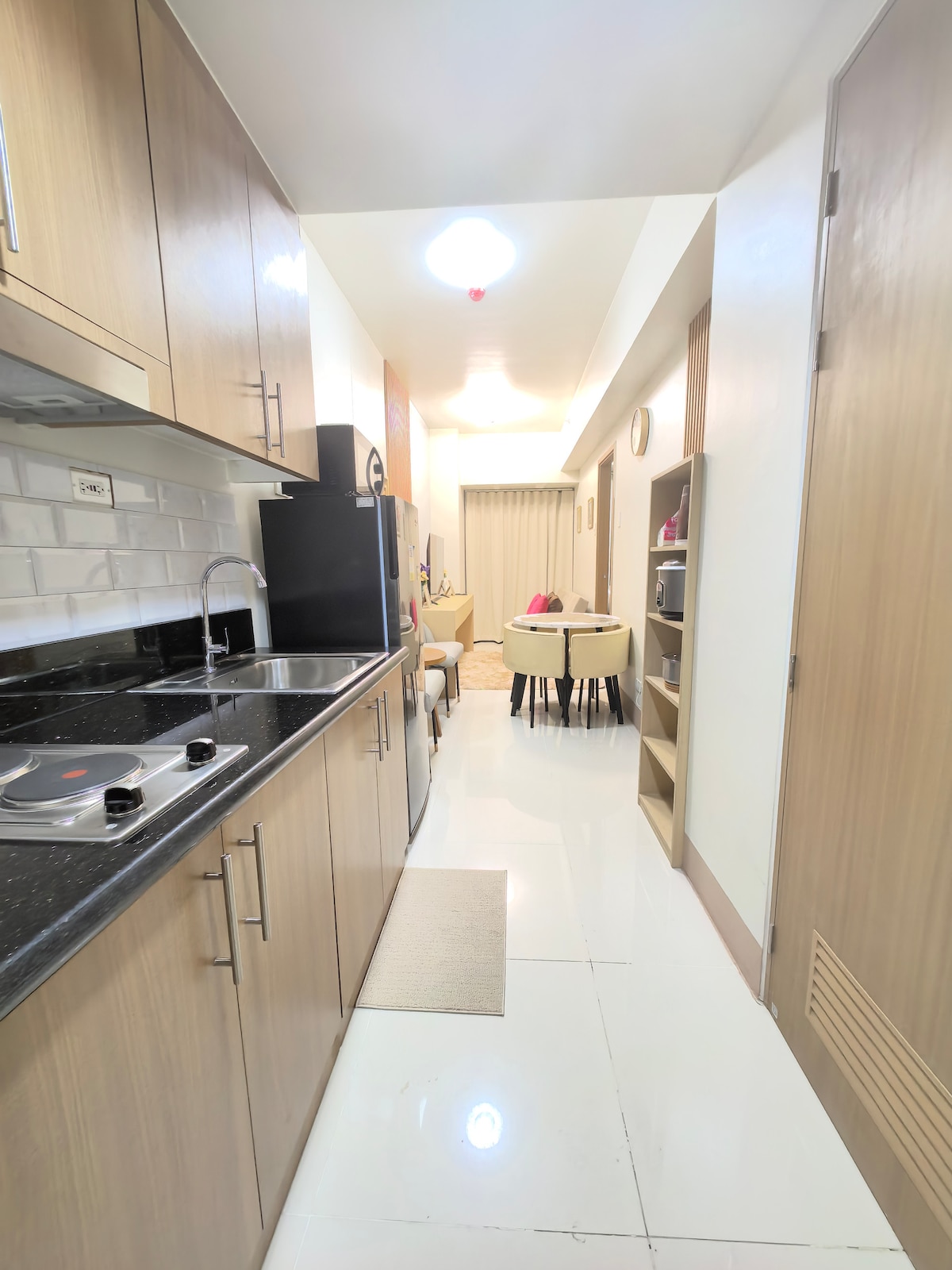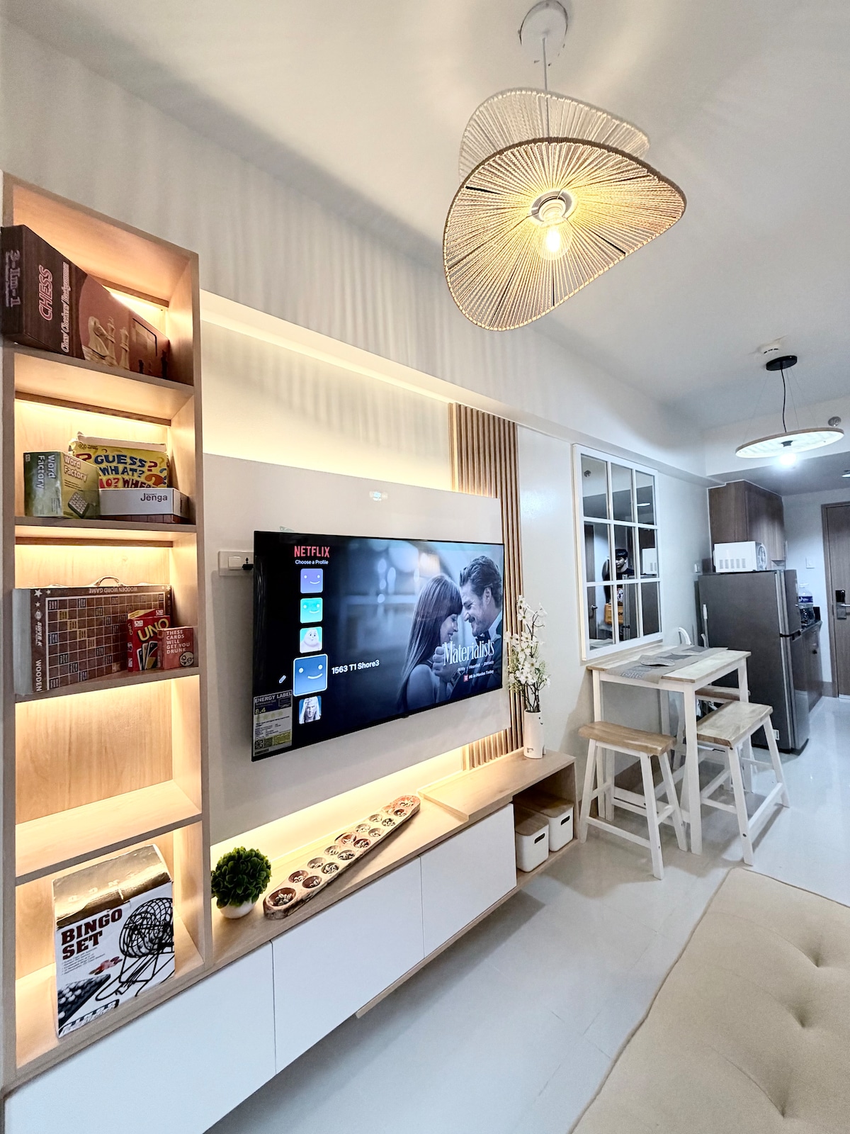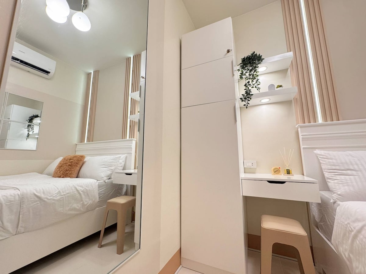 Ella’s Haven is located on the 15th floor of Shore 3 Residences, Tower 1. It features 2 bedrooms, 2 inverter ACs for a cool stay, a 55” Smart TV with Netflix, fast WiFi, a fully equipped kitchen, and an honesty store for late-night cravings. Our unit is perfect for families, friends, travelers, and layovers. It is within walking distance to MOA, IKEA, SMX, and very near NAIA Airport and entertainment areas. Your perfect stay starts here! Extra fees apply for children aged 2 years and above.