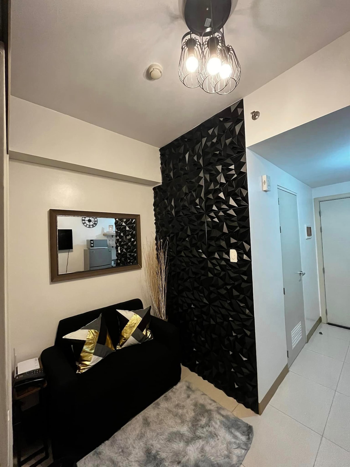 This place is located near the mall and countless food options. Convenience like no other. The room features a fully and luxurious interior with a stunning view of the mall/city and is a perfect alternative for hotels. Enjoy streaming on our 55 inches smart tv while lying on our high end chiropractic queensized bed with comfort that rivals top hotels. Very fast postpaid internet, youtube and netflix...we have countless board games and videoke too for endless family fun.
