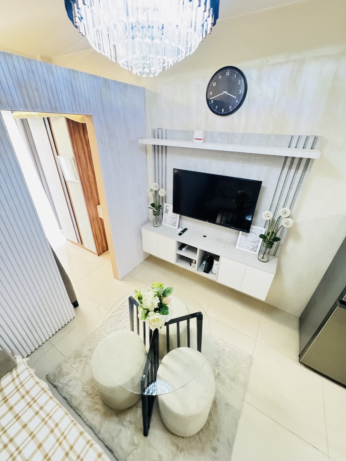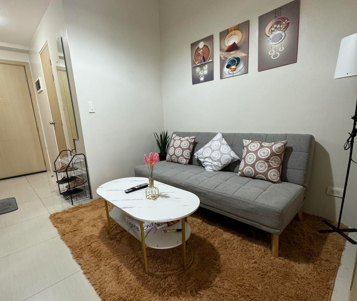 Experience style and convenience in this modern BGC studio! Just a 2-minute walk to Venice Canal Mall, it’s perfect for work and leisure. Enjoy a hidden pullout queen bed, an expanding table for dining or work, and an 84” projector for a cinematic experience. Steps from cafes, groceries, and restaurants, everything you need is within reach. Whether you're unwinding, exploring, or working remotely, this cozy retreat is the ideal staycation spot! 🎬🎮✨