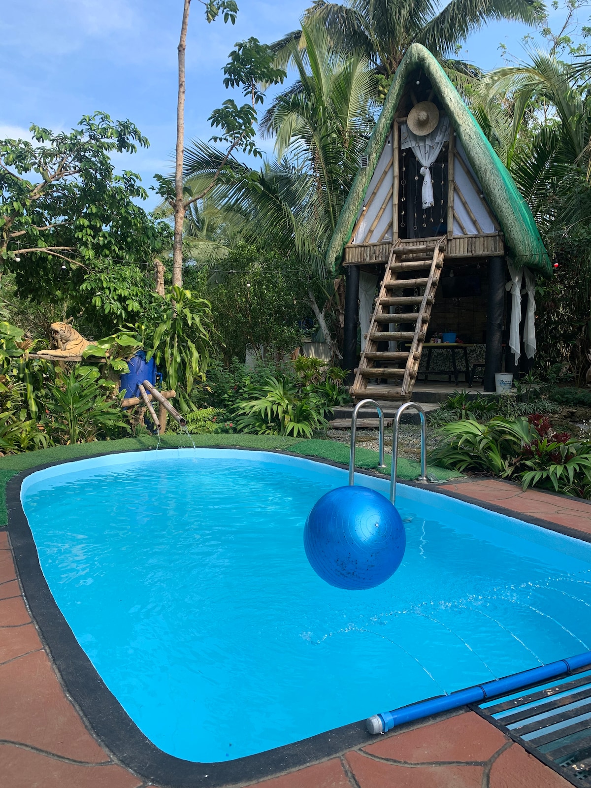 Exclusive 16-capacity compound perfect for large groups. Stay includes the Big Kubo (4pax) with a full kitchen and dining utensils, the A-Frame Stilt Kubo (4pax), a Small Kubo (2pax), and 3 Glamping Tents (6pax). Amenities: Private Pool, Bonfire and Pet-Friendly garden. Dining: Free Filipino breakfast (8am-10am). Paluto service and marketing available with 2-hour lead time. Pets: We are fur parents too, don’t leave them behind.