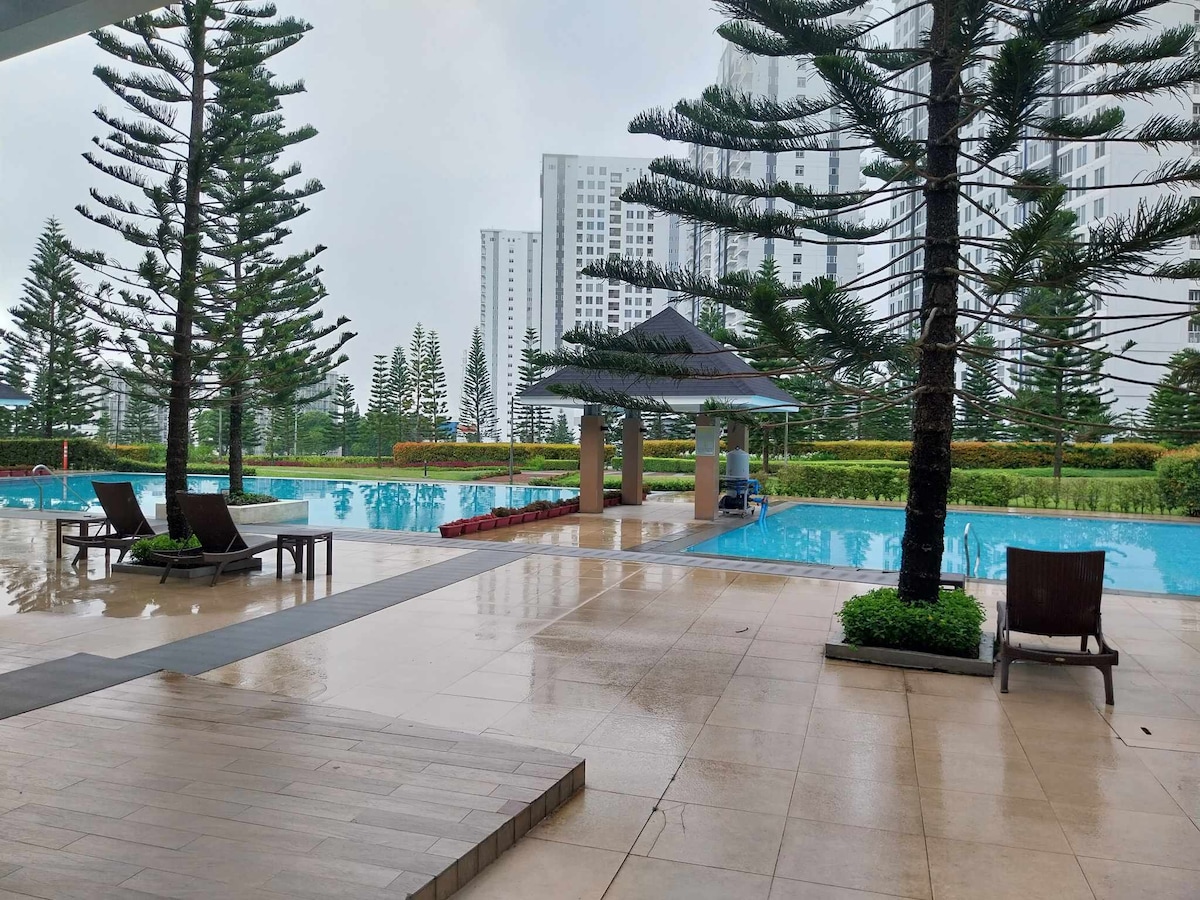 Perched on the 17th floor, our place offers an unparalleled view of the Taal Volcano from the comfort of your own balcony. Not only that, but you can also bask in the serene sight of the pool below, all while nestled in the cozy embrace of a bay window seat. This spacious 42 sqm, 1-bedroom corner unit is designed to accommodate up to 5 guests comfortably. With a queen-size bed in the bedroom, a daybed in the living room, & a bay window seat, this space promises a relaxing stay for everyone.