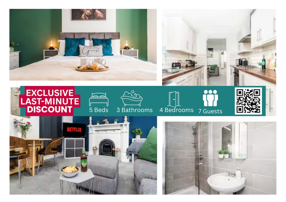 伯明翰时尚舒适4卧室 | 可入住7人,有停车位