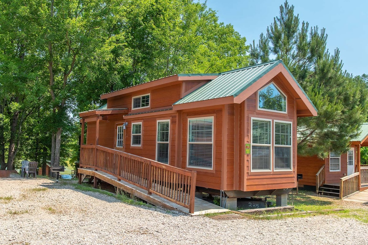 At Water’s Edge, escape to a secluded lakeside retreat where every moment is designed to help you reconnect. Just steps from the water, this cozy cabin offers a private hot tub for two, perfect for soaking under the stars. Drift into relaxation on the deck hammock, or share intimate evenings by the fire pit as the night unfolds. With floor-to-ceiling windows framing breathtaking views, the minimalist boho design creates the perfect atmosphere for fully disconnecting.