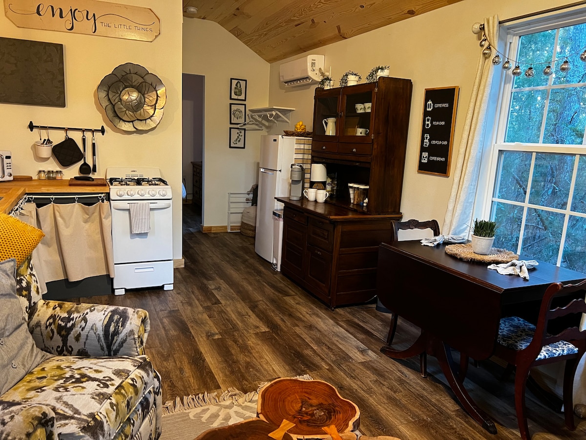 Nestled 3 minutes from downtown Lindale, this cozy cottage, originally from Maine, has been placed in our little section of the Piney Woods. (Located 20 minutes from downtown Tyler). Inside: A queen sized bed, two cozy sitting areas, a kitchenette, a coffee/tea bar, and a full bathroom. Outside: Two rocking chairs, outdoor dining, blueberry bushes, a plum tree, cardinals and hummingbirds. Perfect for: Romantic getaways Solo retreats Lindale Festivals Canton Trade Days Visiting Family