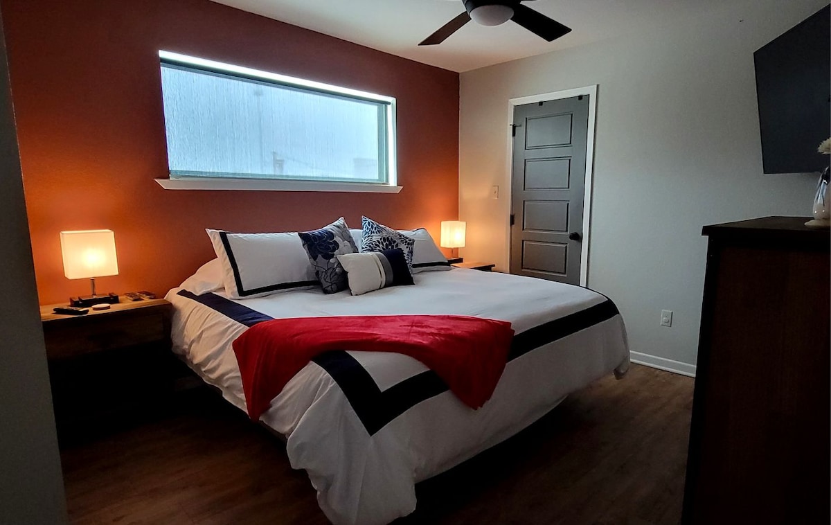 The Arcade Loft in Downtown is stylish, spacious, and one-block from Tyler's Downtown Square. Our central location is in walking distance from so many of Tyler's best coffee-shops, restaurants, & bars. Each bedroom features it’s own cabinet Arcade Machine - Mortal Combat ll and Mrs. Pacman/Galaga. The stylish Interior Design and unique layout creates a comfortable yet inspiring atmosphere. The Arcade Loft was designed to accommodate weekend getaways as well as weekday working professionals.