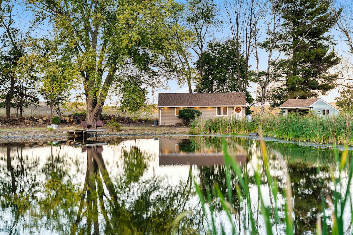Beautiful, newly remodeled 2 BR cottage on the water between pond & creek. Whole house with fully equipped kitchen, dining area, living room with fireplace, work areas with high speed internet, books, games, and ROKU TV. Primary bedroom faces the pond; 2nd bedroom is creekside. Outdoors include: gas firepit, picnic tables, gas grill, games, and seating by the water. This special get away is close to stores and Poconos seasonal activities, but tucked away for your relaxation and enjoyment.
