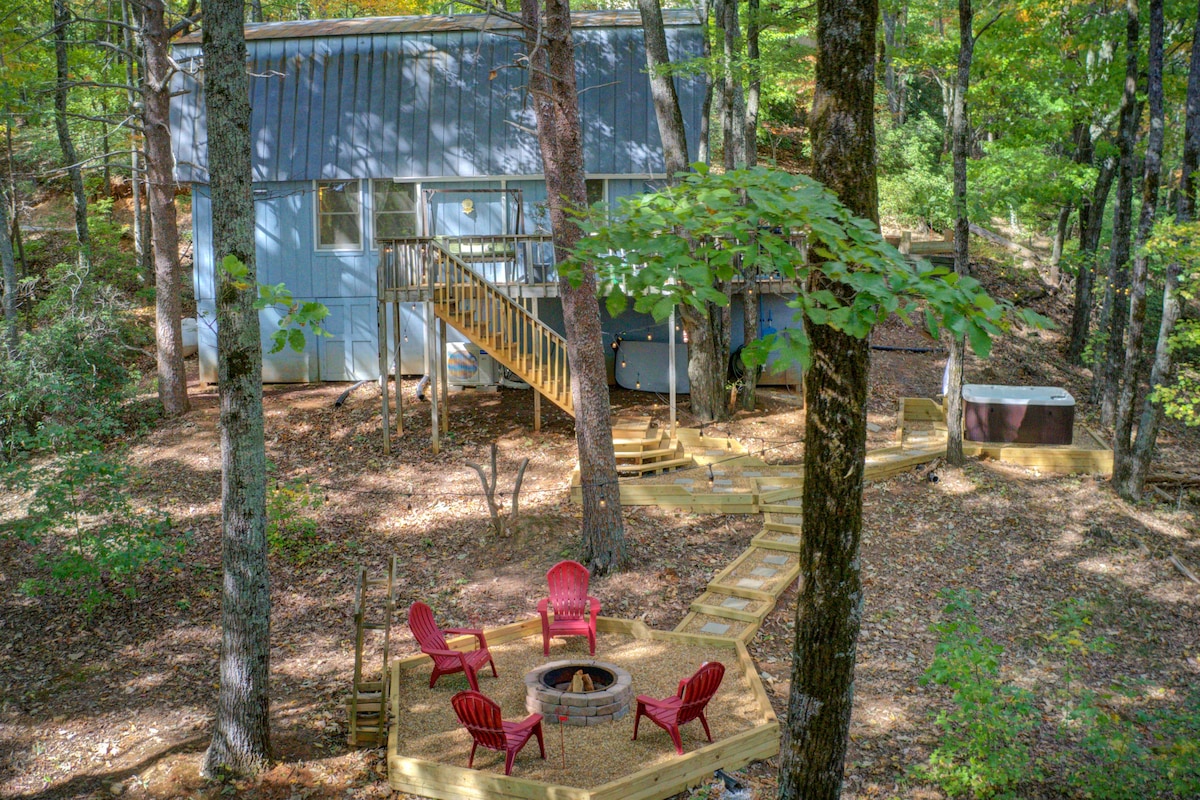 Our scenic view and perfect location allows for an amazing stay in Helen, Ga. This cabin is the perfect romantic getaway to enjoy all that the city has to offer, from wineries to river tubing. ONE MILE from downtown Helen. The house itself has a full & stocked kitchen, queen sized bed, fireplace, hot tub, outdoor fire pit and more. While staying here, you will have the house all to yourself, free parking, free Wi-Fi, private entrance and access.