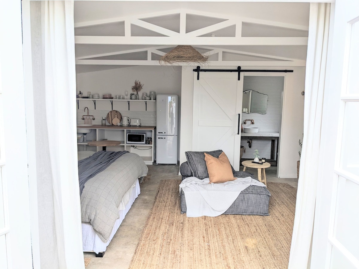 The Twisted Mermaid is a beautiful self-contained modern studio set in a lush garden. This new magnificently appointed studio has its own private entrance, private outdoor area as well as onsite parking. Much care has been taken to ensure the studio is equipped with top end appliances and linen. It comprises of a large bathroom, bedroom and an open plan kitchen and lounge. The studio is a perfect choice for both couples and single travelers. A one minute stroll from the magnificent Smiths Beach.
