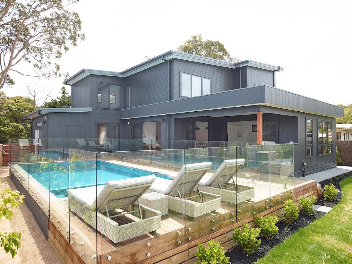 Welcome to your dream holiday home. Experience the magic of Mount Martha in spectacular fashion with this luxury beachside residence capturing a sweeping Port Phillip Bay view footsteps to the foreshore. This striking holiday home features panoramic views of year-round sunsets over the water and passing ships on the horizon enclosed in a secluded and private setting. In the evening, you can change the color of our 14.4m *4m pool using the remote.