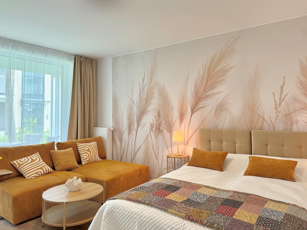Spokój nadmorskiej natury, z dala od straganów, hałaśliwych promenad i tłumów. Przytulny apartament, blisko morza i lasu, to prawdziwa oaza wyciszenia. Leśna ścieżka wśród sosen i buków prowadzi do szerokiej, piaszczystej plaży z urzekającym klifem — idealne miejsce na wypoczynek, magiczne spacery i zachody słońca. Komfortowy salon, sypialnia i pełna kuchnia pozwolą Ci poczuć się jak w domu. Tu natura gra pierwsze skrzypce — wokół czekają lasy, jezioro Gardno i Słowiński Park Narodowy.
