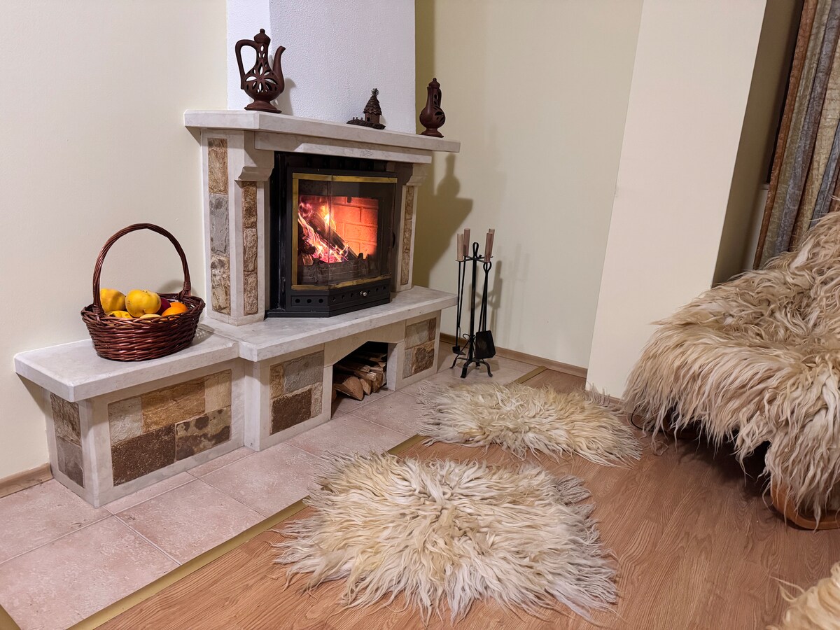 Грижливо, практично и дизайнерски обзаведено, студиото разполага с всичко необходимо за пълноценна почивка-ергономичен антистрес матрак, ортопедични или високи възглавници, леки завивки, романтична камина, съвременни уреди, напълно обзаведена кухня с маса за хранене, удобен диван, който се превръща в легло, просторна баня, високоскоростен Интернет и гледка към борови гори от балкона! Намира се на първи (не партерен) етаж и има собствен изход към градината! Паркингът е точно до входа на сградата.