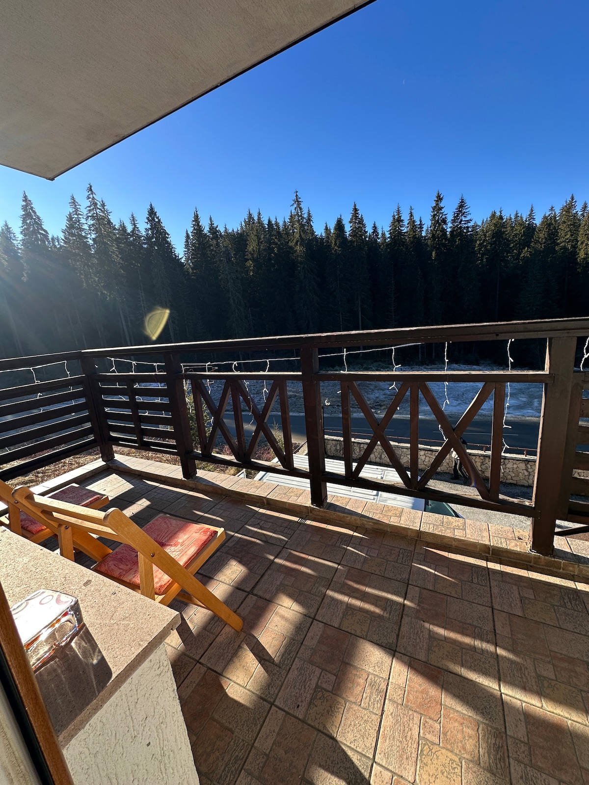 A43a is a comfortable studio with breathtaking view to the ski slopes and Snezhanka Tower. It is located in GreenLife Complex. From the window you have direct view to the slopes, the pines and the sky. The biggest advantage of the hotel is that you have direct access to the ski slope. The place is recently renovated and equipped with all necessary amenities. a43a is a studio apartment where 2 to 4 person can sleep comfortably.