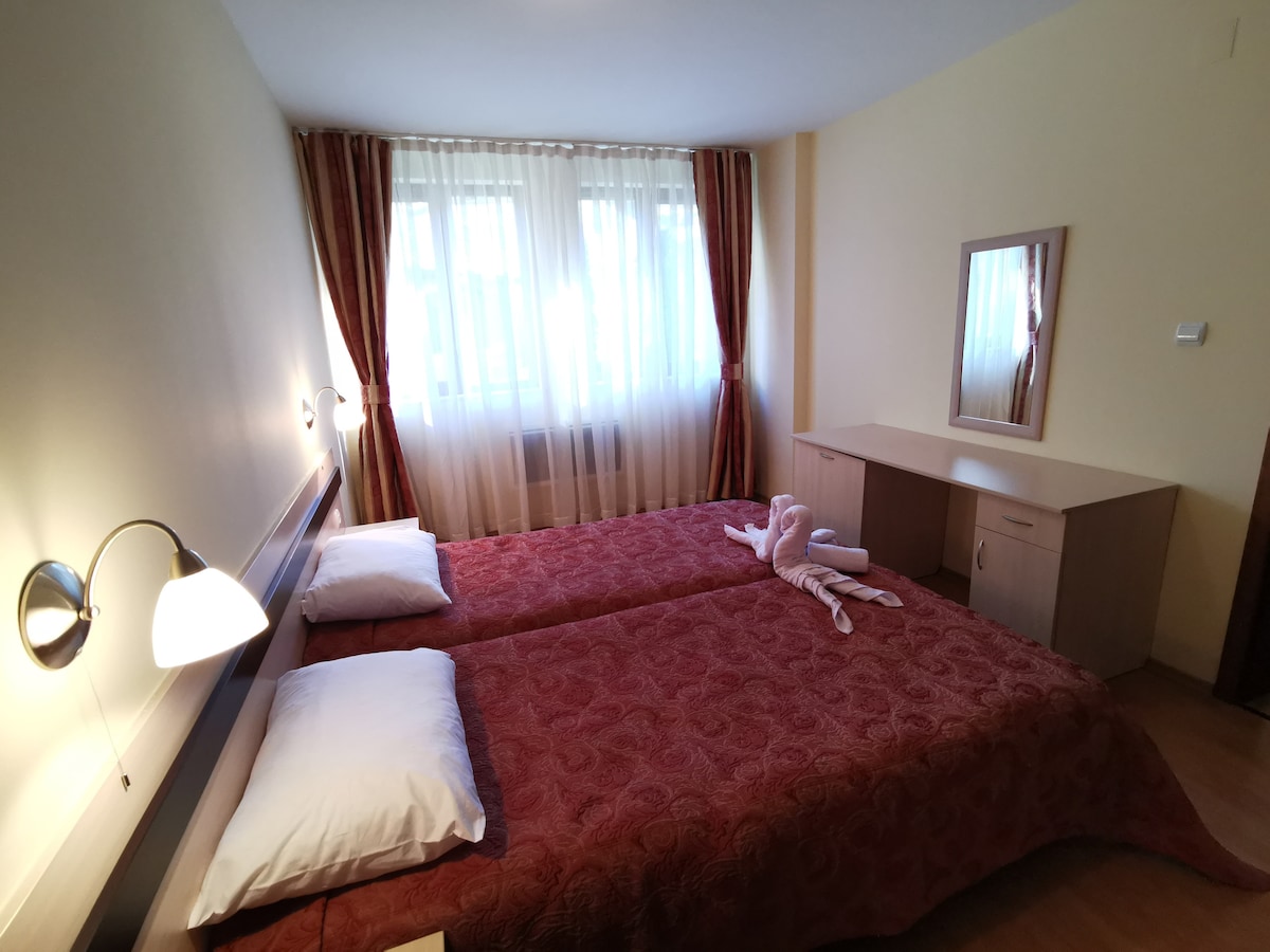 Looking to escape the noisy city, enjoy nature and peace? We currently have a vacation ski studio flat available in Pamporovo Bulgaria close to Smolyan. Flat is equipped with two twin beds (or large bed), desk, refrigerator, microwave, chair, TV and large closet. Spacious bathroom. Perfect for a couple or solo traveler. Wifi is available through the complex but is not controlled by owner. Perfect accomodation during ski season or hiking in the beautiful Rhodope Mountains.