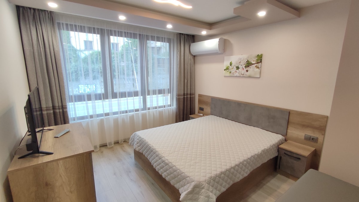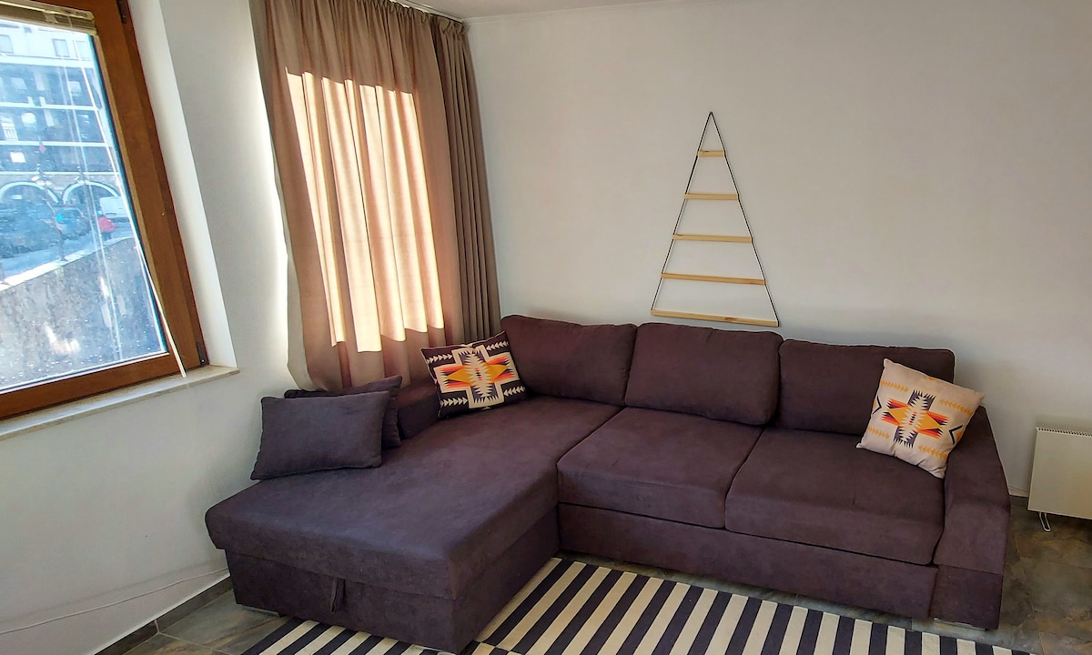 1-bedroom Aparment ( Hotel Laplandia ) with indoor fireplace. Centrally located, ONLY 200 meters away from the ski lift. You'll find an open space, including a living room with a sofa bed for extra guests & a Kitchen with a dining table. 1 bedroom with a king size double bed & TV. Also a very specious bathroom including a bathtub. You will also find restaurants & supermarkets within 100 meters reach. I hope you enjoy your stay and the amazing experiences Pamporovo has to offer you!