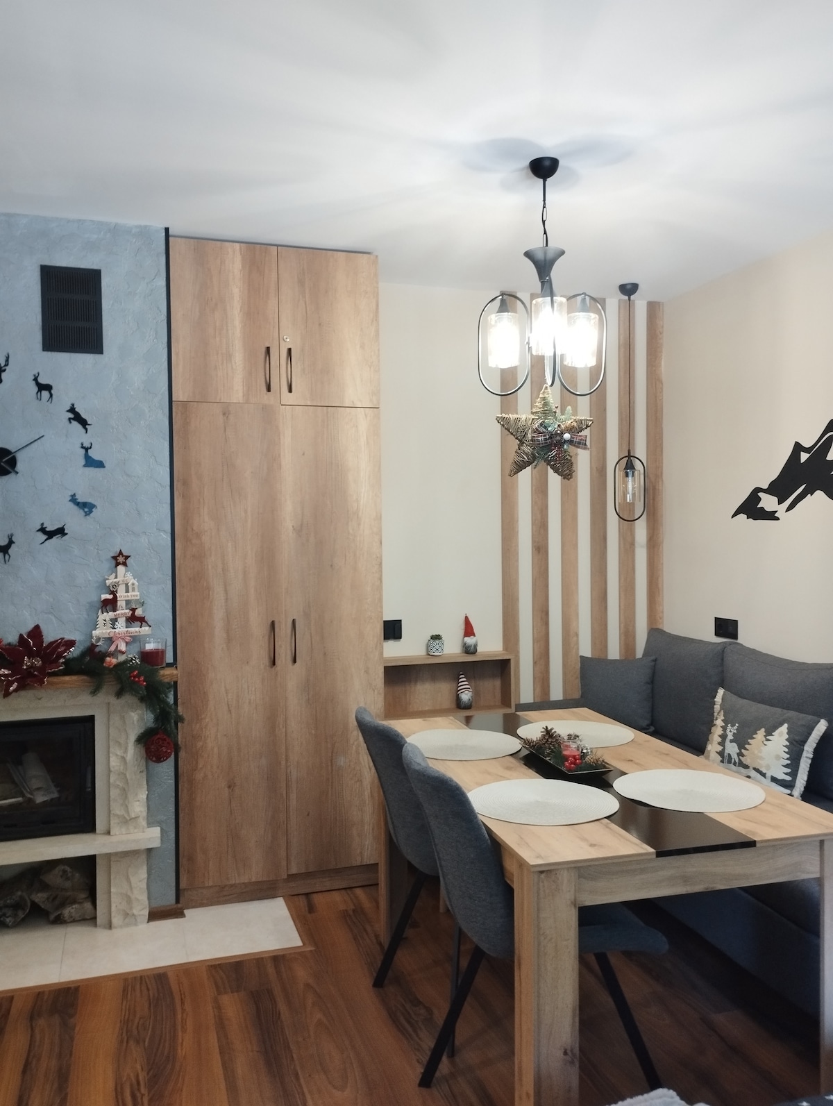 Relax with the whole family at this peaceful two-bedroom apartment to stay. Close to the slopes and the mountain trails, located in a modern complex, the space is perfect for your mountain vacation in the beautiful Rhodope Mountains. A fireplace is available in the living room for warmth and coziness. Additional features are also available in the complex, for which you can reed more bellow. Strong WiFi is available in the apartment.