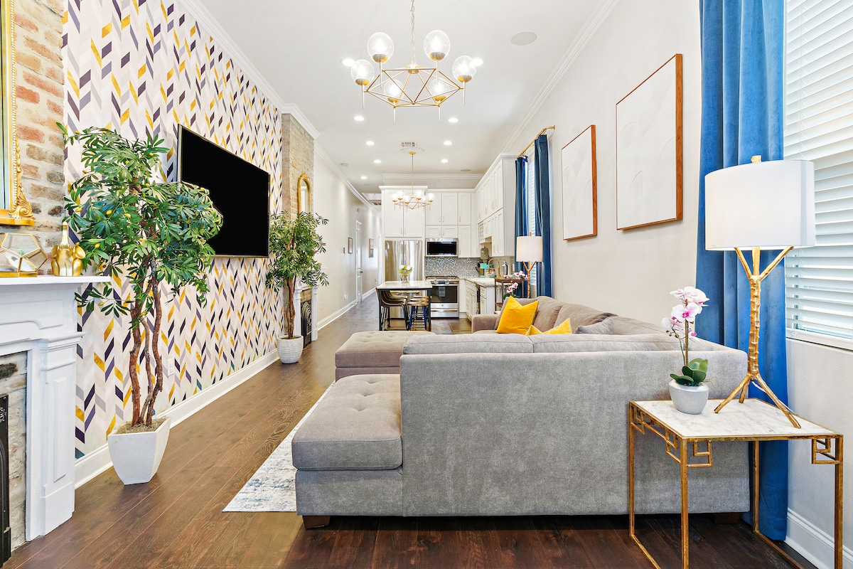 Luxury 3BR/2.5BA Mid-City retreat with three king bedrooms and a chef’s kitchen. Features a 70" HDTV, fast Wi-Fi, workspace, and modern comforts throughout. Enjoy the large fenced backyard with fire pit, BBQ grill, and cornhole. Includes two free parking spots and an on-site EV charger. Trader Joe’s is nearby, and you’re steps from the Endymion parade route, near the Canal Streetcar, Superdome, French Quarter, and Bourbon Street. Perfect for festival stays.