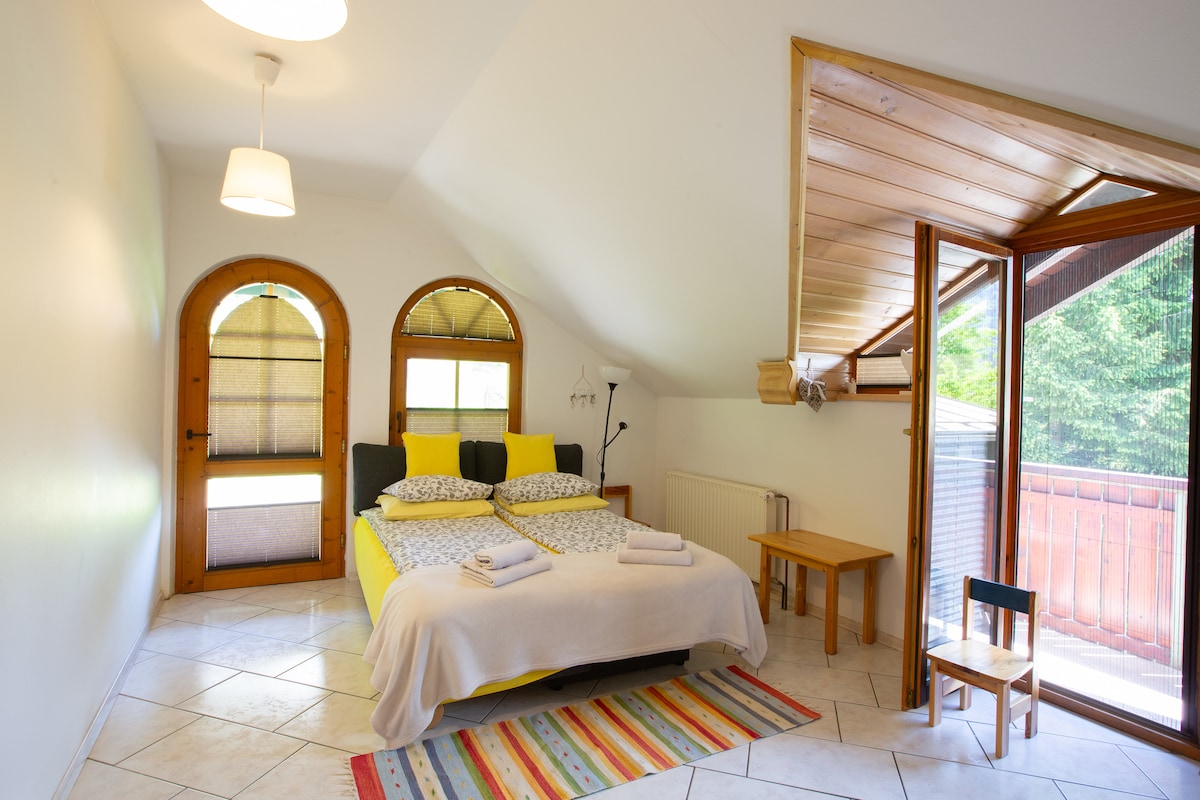 Bright apartment- loft with a great view of the mountains, just a few minutes from lake Bohinj. Black and white with something red - like a cake with a cherry on top :) You'll feel at home and at the same time you’ll be on holidays. Location offers many hiking and bicycle paths and it is close to the ski resorts of Vogel and Soriska planina and a Water park with wellness and only a few kilometres from lake Bohinj, where you can swim, surf, kayak, sup,..., and enjoy the nature.