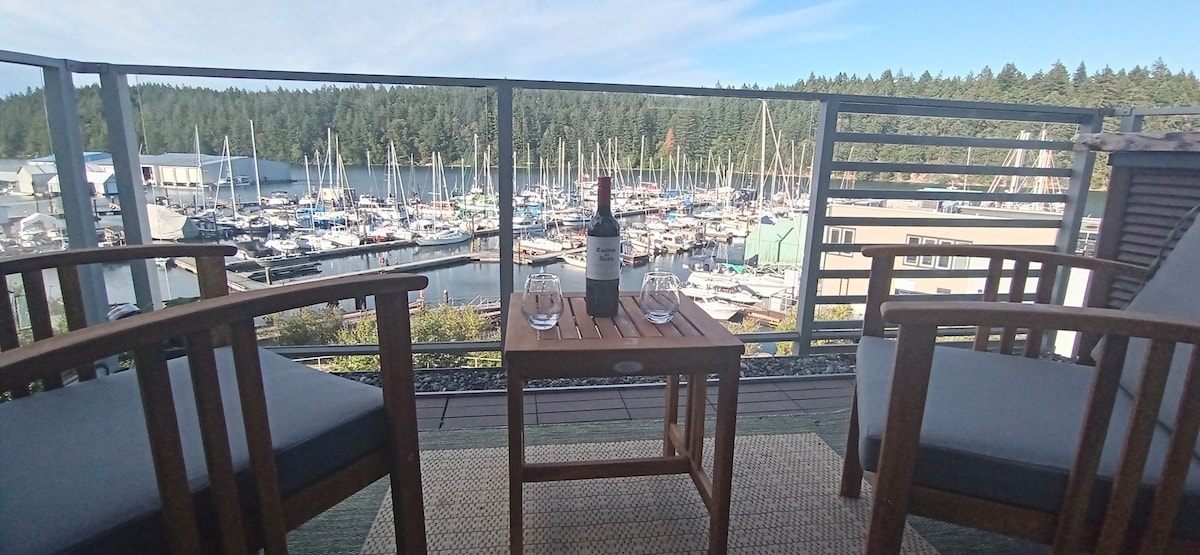 545 sq ft cosy 1 bedroom cottage (sleeps 2) -Queen size bed -surrounded by the vast forest and looking down to ocean arm -abundant linens -indoor large soaker tub (no shower) -outdoor hot shower (March 15-Oct 15) -separate private hot tub building (if another couple on property they can access) -private dock -complimentary canoes and a paddleboard (May 15-Oct 1) -woodstove w/complimentary 1st bucket wood -large private patio -BBQ -full stocked kitchen with dining area -living room