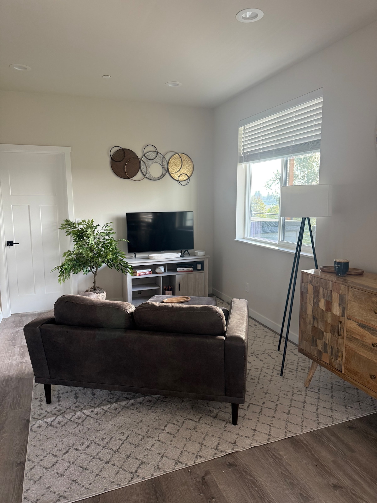 Discover a sleek 2022-built retreat in Lynnwood’s safe neighborhood! This modern 1B1B boasts luxury vinyl flooring, quartz counters, and brand-new appliances—all on one level (no stairs). ideal for all travelers. Enjoy effortless access to Seattle (25 min), Bellevue (20 min), and Boeing (15 min), with I-5 just 1 min away and Alderwood Mall/Costco 4 min by car. The private entrance and secure setting create a comfortable, worry-free stay in this sunlit space designed for both short and long sta