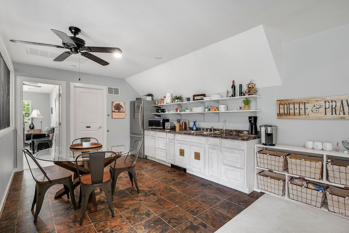 You can feel the stress roll off your shoulders as you drive up the tree-lined road, You Might have to stop for a grazing deer or two. Our Sustainable Organic Gardens offer picturesque sitting areas where you can sit and enjoy the sound of wide open spaces. free-range chickens and roaming deer. Feels off the Grid, yet is 2 miles from local shops, restaurants, many eco-friendly activities, and a fire porch swing Oasis making S'mores stargaze under the night sky