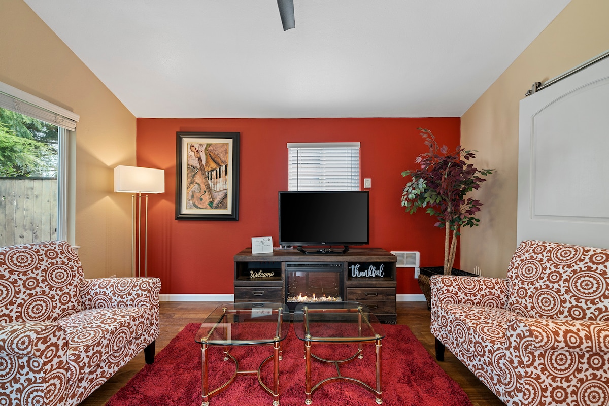 Found in Edmonds, WA, this vibrant mid-century modern–eclectic cottage blends comfort, creativity, and a dash of funk. Situated in a beautiful, quiet neighborhood it is perfect for dreamers, travelers, or cozy weekenders, it's your ideal hub after exploring Puget Sound, "Edmo-ween", art galleries, or local cafés. Bright, clean, and spacious enough for up to four adults, with curated design flourishes (think retro furniture & accents, with a selfie wall that’s ready for your best snaps).