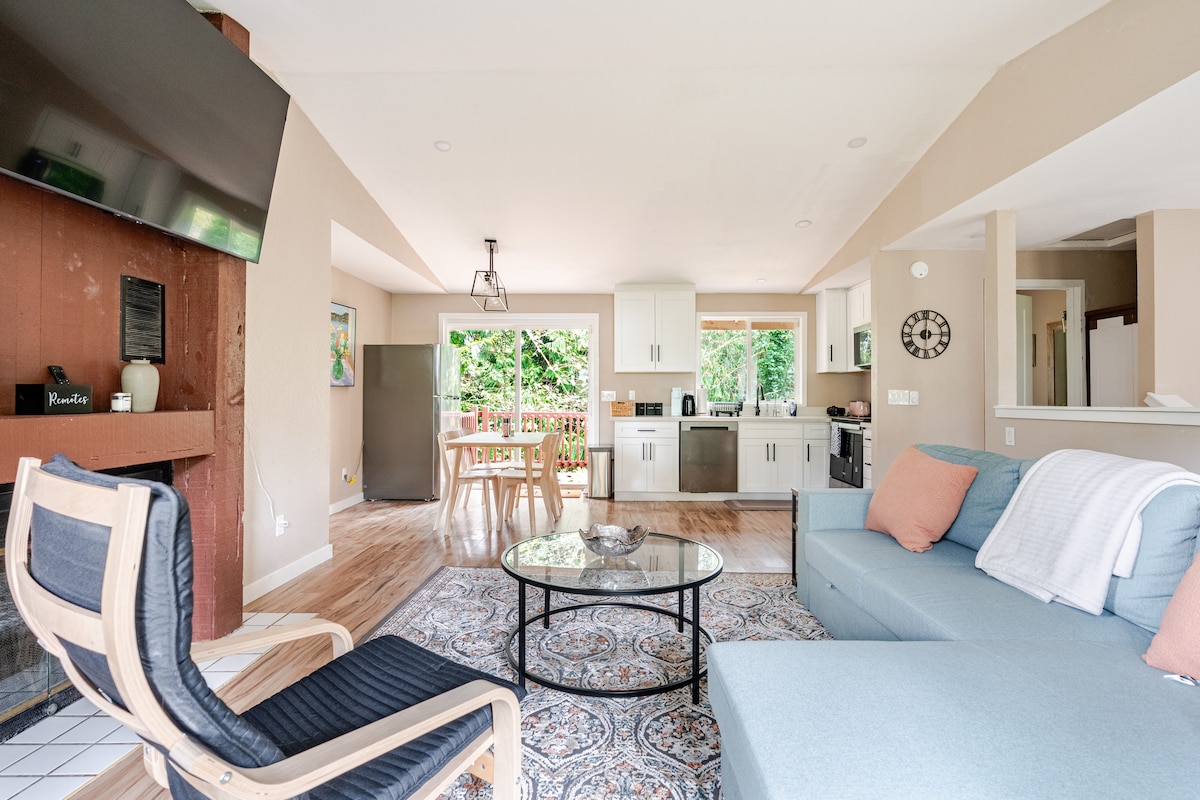 Escape to the tranquility of our uniquely designed home, embraced by the trees. With viewing windows in every space, including a cozy sunroom perfect for stargazing, you'll feel immersed in nature's beauty. Just a short drive from Boeing's Paine Field Airport(PAE), our personalized lock code ensures easy access for a stress-free stay. Every detail has been thoughtfully curated to ensure a relaxing experience. Got any questions or special requests? We're here to make your stay unforgettable!